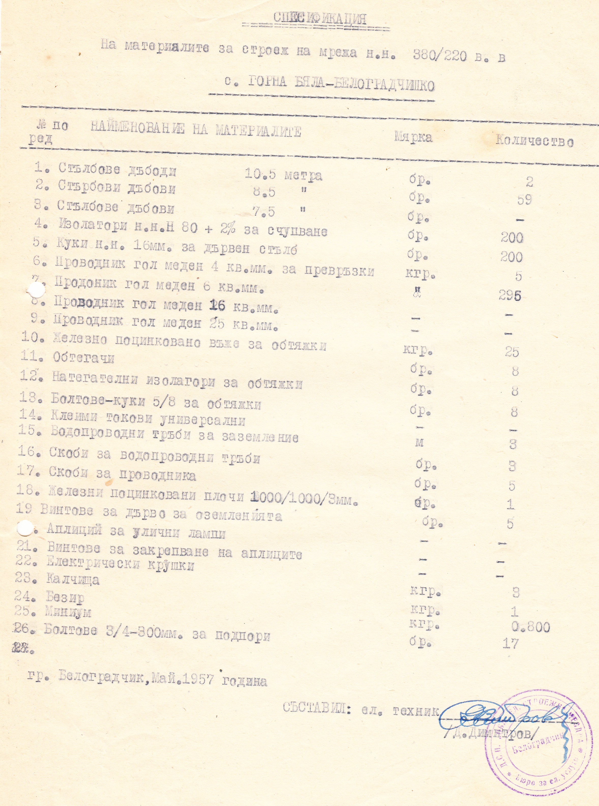 Съставил Ел.Техник: /П/ Д.Димитров