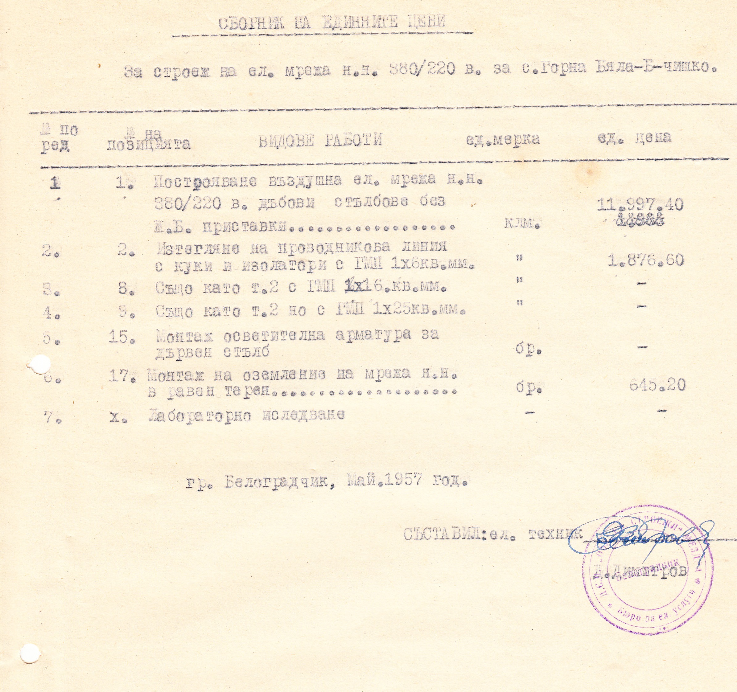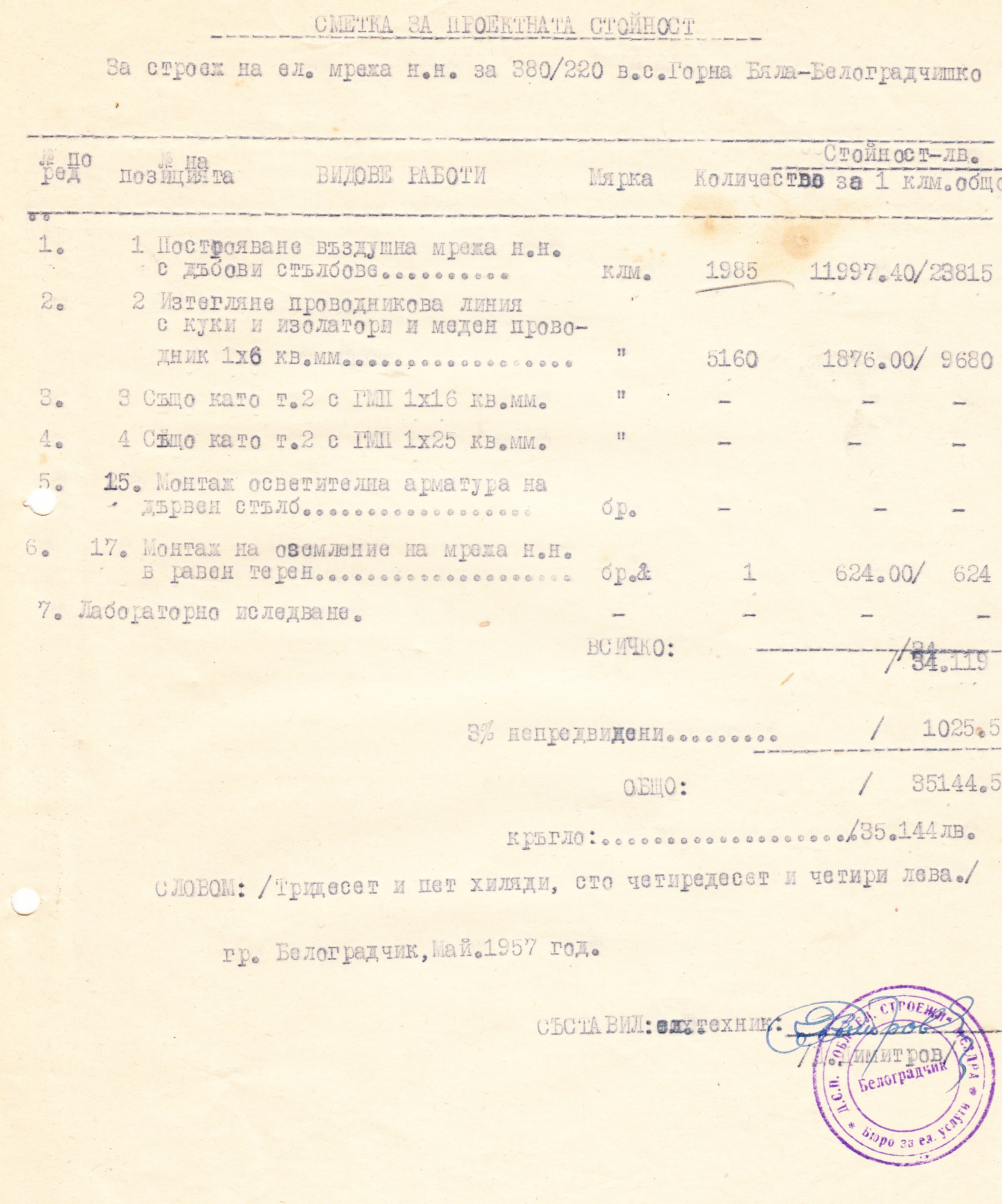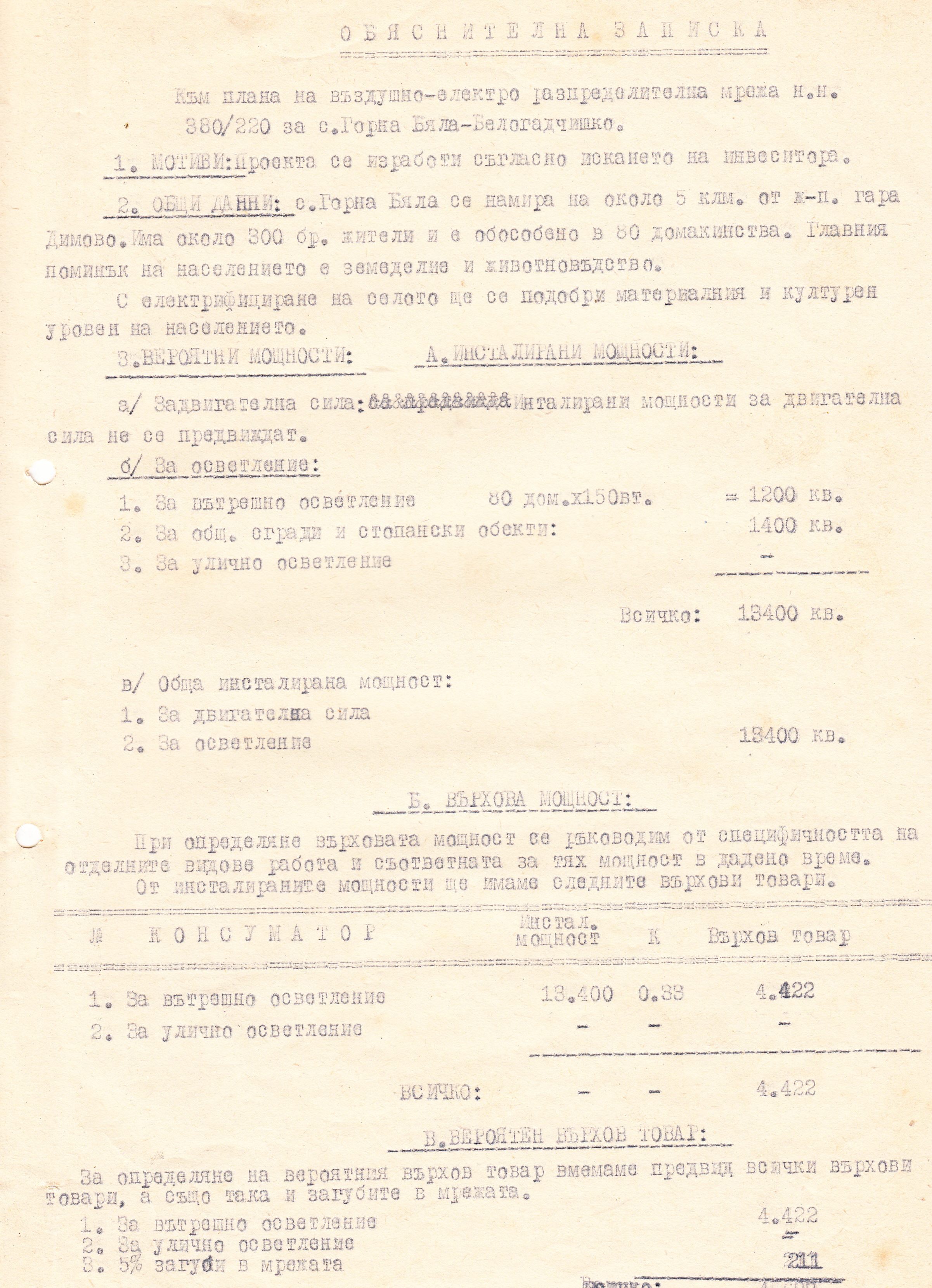 и СМЕТНА ДОКУМЕНТАЦИЯ за строеж на Ел. мрежа ниско напрежение 380/220 волта за село Горна Бела, Белоградчишко