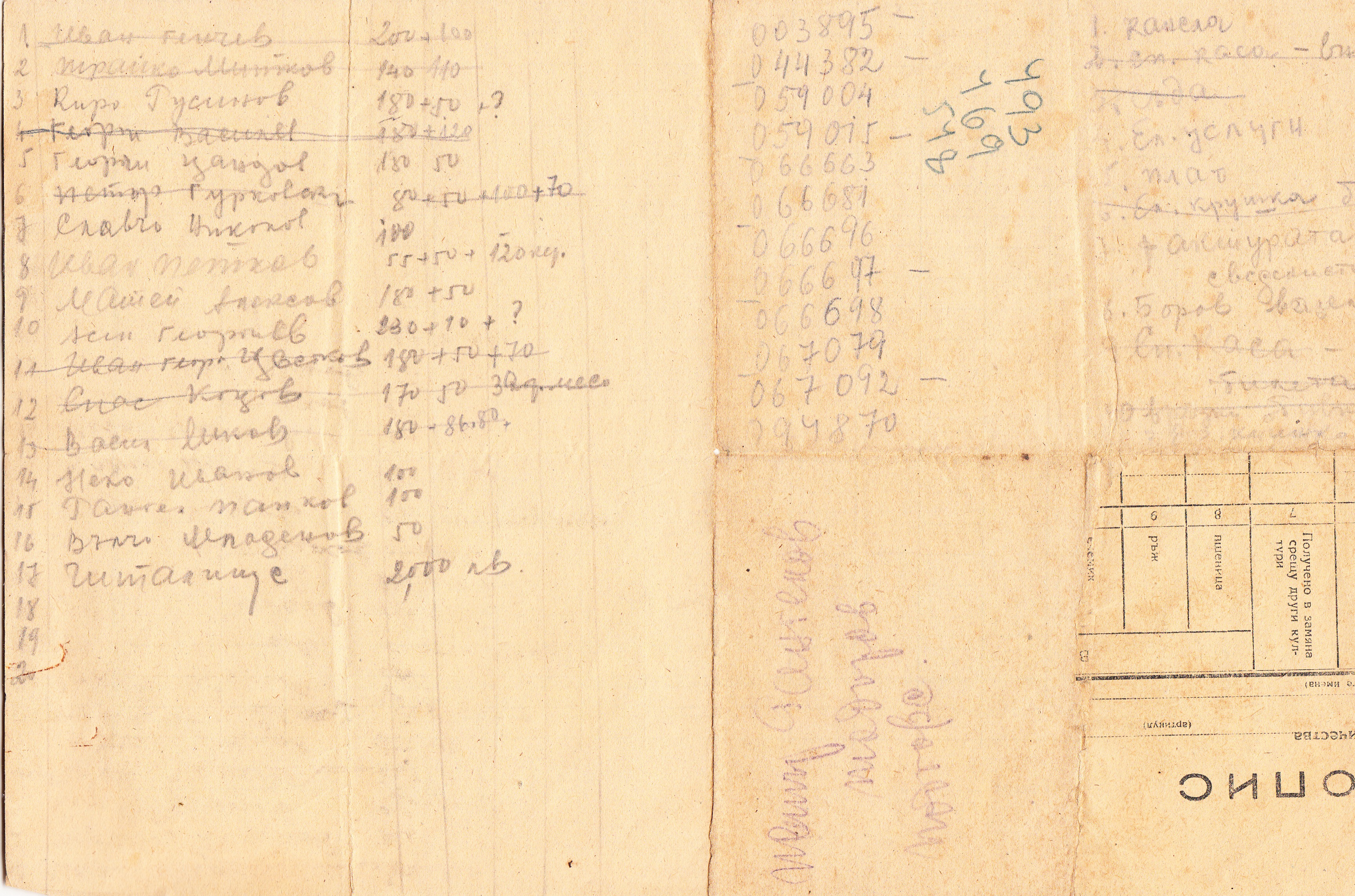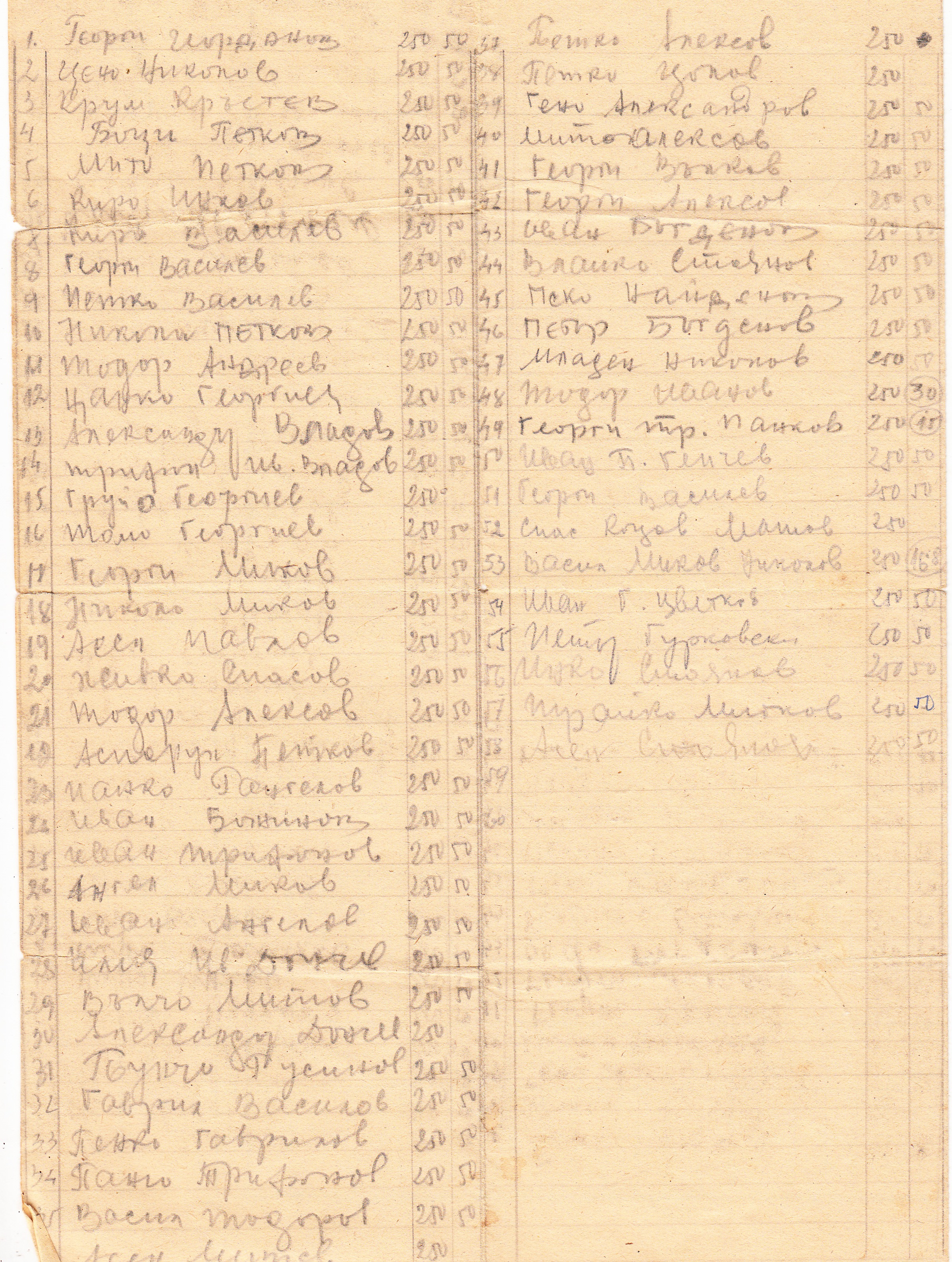 Георги Йорданов, 2. Цено Николов, 3. Крум Кръстев, 4. Боци Петков, 5. Мито Петков, 6. Киро Инков, 7. Киро Василев, 8. Георги Василев, 9. Петко Василев, 10. Никола Петков, 11. Тодор Андреев, 12. Цанко Георгиев, 13. Александър Владов, 14. Трифон Ив.Владов, 15. Груйо Георгиев, 16. Томо Георгиев, 17. Георги Миков, 18. Николо Миков, 19. Асен Павлов, 20. Живко Спасов, 21. Тодор Алексов, 22. Аспарух Петков, 23. Панко Рангелов, 24. Иван Божинов, 25. Иван Трифонов, 26. Ангел Миков, 27. Иван Ахгелов, 28. Илия Ив. Дончов, 29. Вълчо Митов, 30. Александър Дончов, 31. Пунчо Русинов, 32. Гаврил Василов, 33. Пенко Гаврилов, 34. Панчо Трифонов, 35. Васил Тодоров, 36. Асен Митев, 37. Петко Алексов, 38. Петко Цолов, 39. Гено Александров, 40. Мито Алексов, 41. Георги Вълков, 42. Георги Алексов, 43. Иван Богданов, 44. Влайко Стоянов, 45. Пеко Найденов, 46. Петър Богданов, 47. Младен Николов, 48. Тодор Иванов, 49. Георги Тр. Панков, 50. Иван П. Генчев, 51. Георги Василев, 52. Спас Коцов Митев, 53. Васил Миков Николов, 54. Иван Г. Цветков, 55. Петър Гурковски, 56. Инко Стоянов, 57. Трайко Митков, 58. Асен Стоянов.