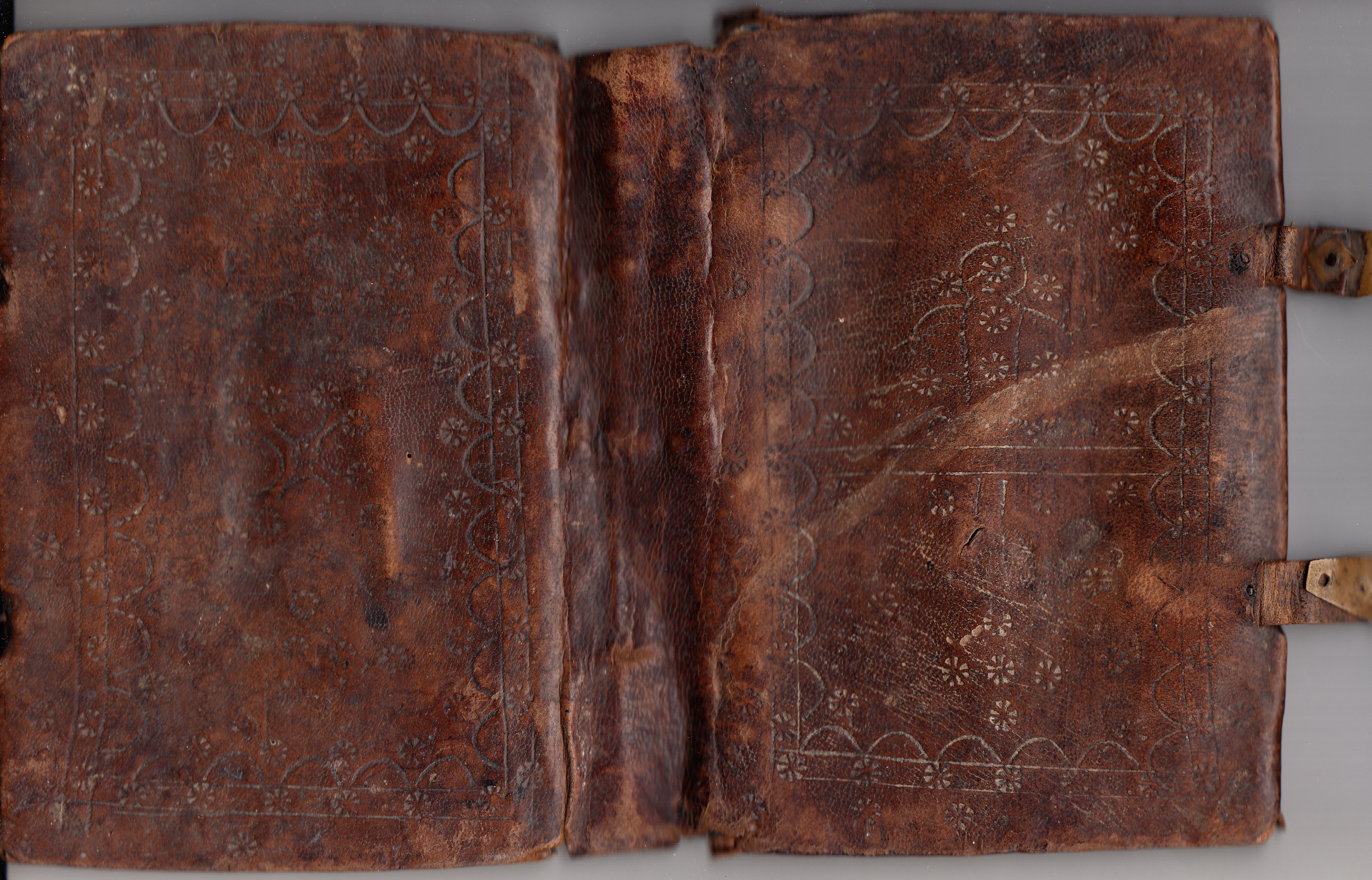 На кориците които са дървени покрити с кожа има още едно име. Мастилото е кафяво, предполагам правено от шикалки, което е характерно за времето когато са писани тези бележки.