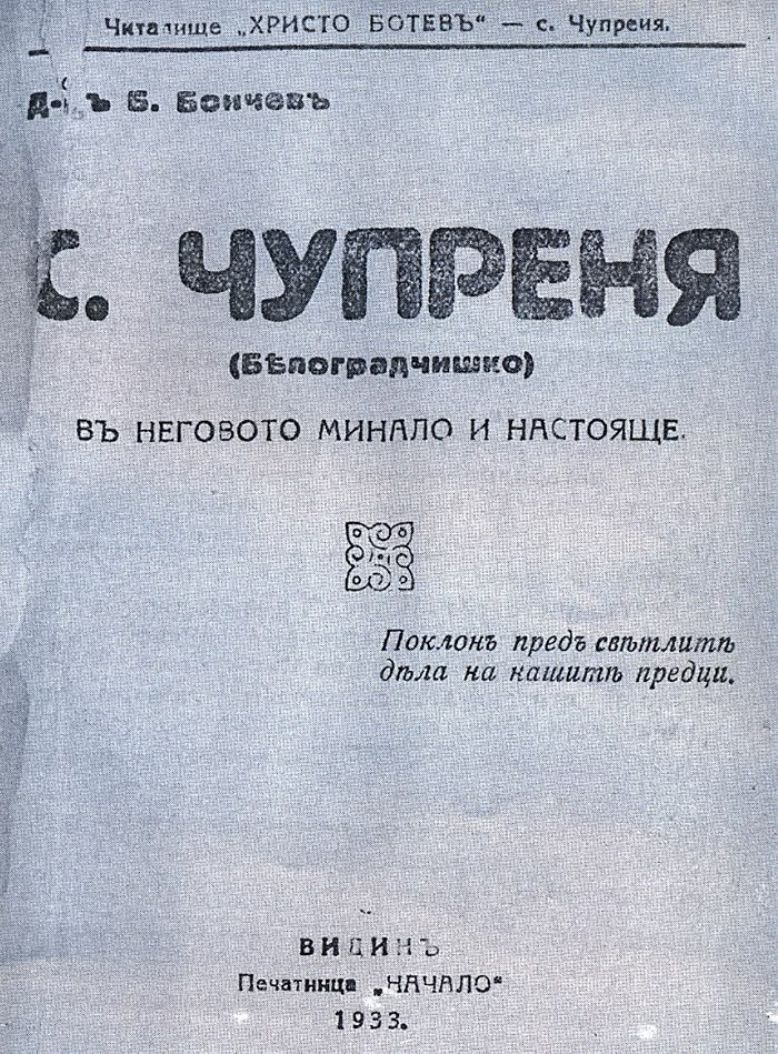 През 1933 година излиза една книжка от Д-р Бърни Бончев, Доктор Бончев е един от най-известните кметове на град Видин и голям специалист в санитарното дело.