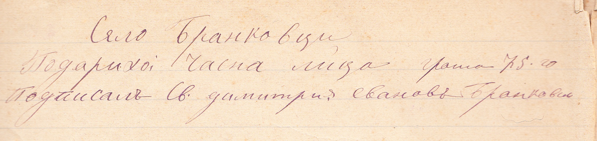 През 1884 година Белската община предприема кампания за събиране на дарения за довършване строежа на църквата в село Бела. В този документ е представено дарението от село Бранковци.