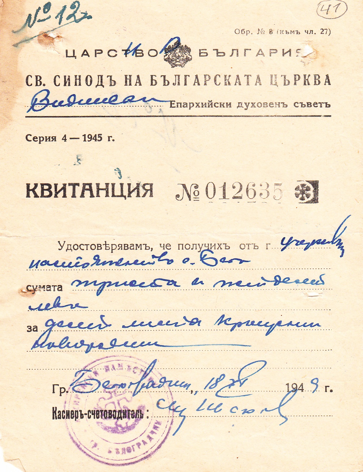 През 1884 година Белската община предприема кампания за събиране на дарения за довършване строежа на църквата в село Бела. В този документ е представено събирането на средства от гр.Белоградчик.