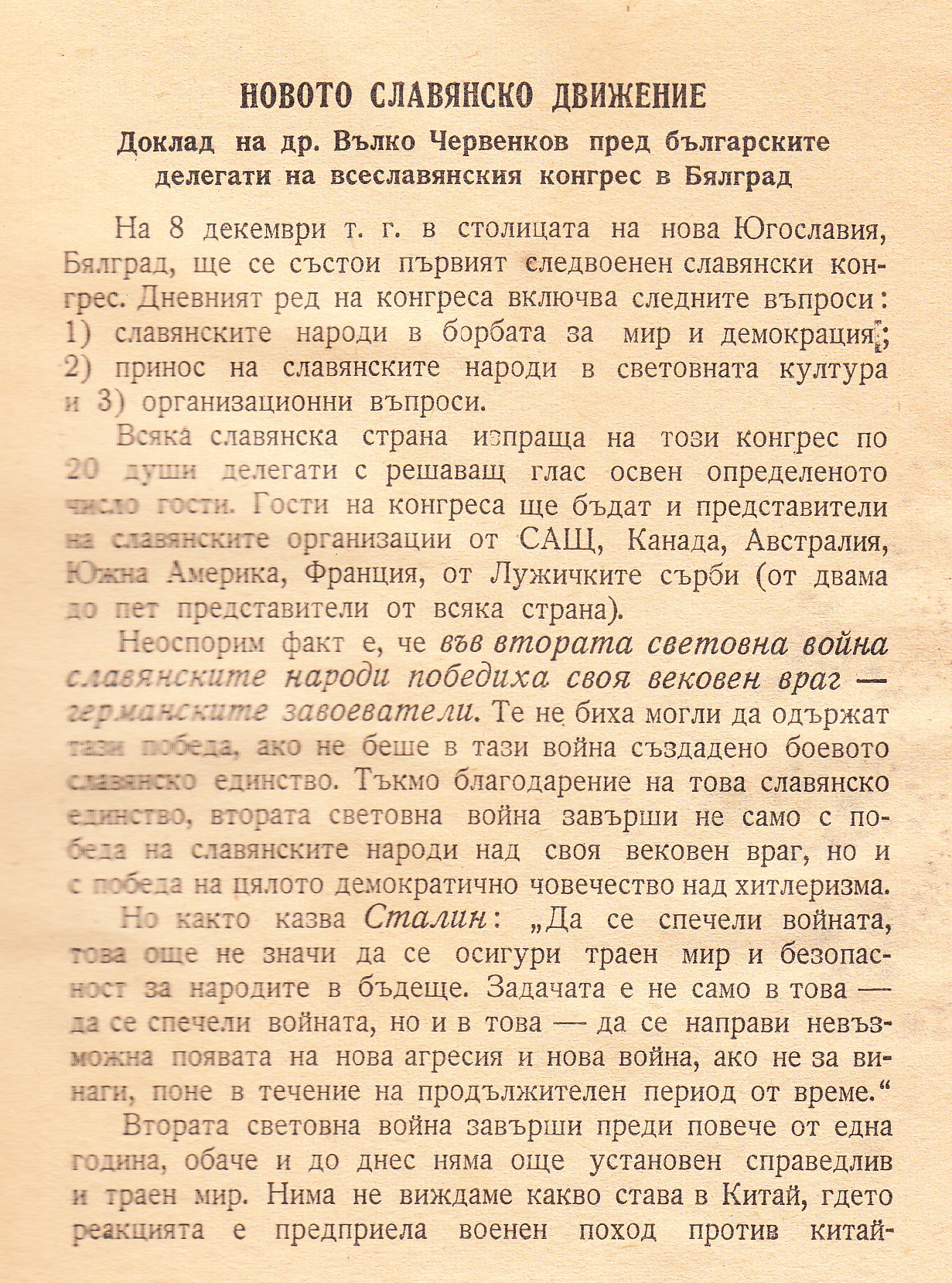 Първият следвоенен славянски конгрес – Белград 8-11.12.1946 г.