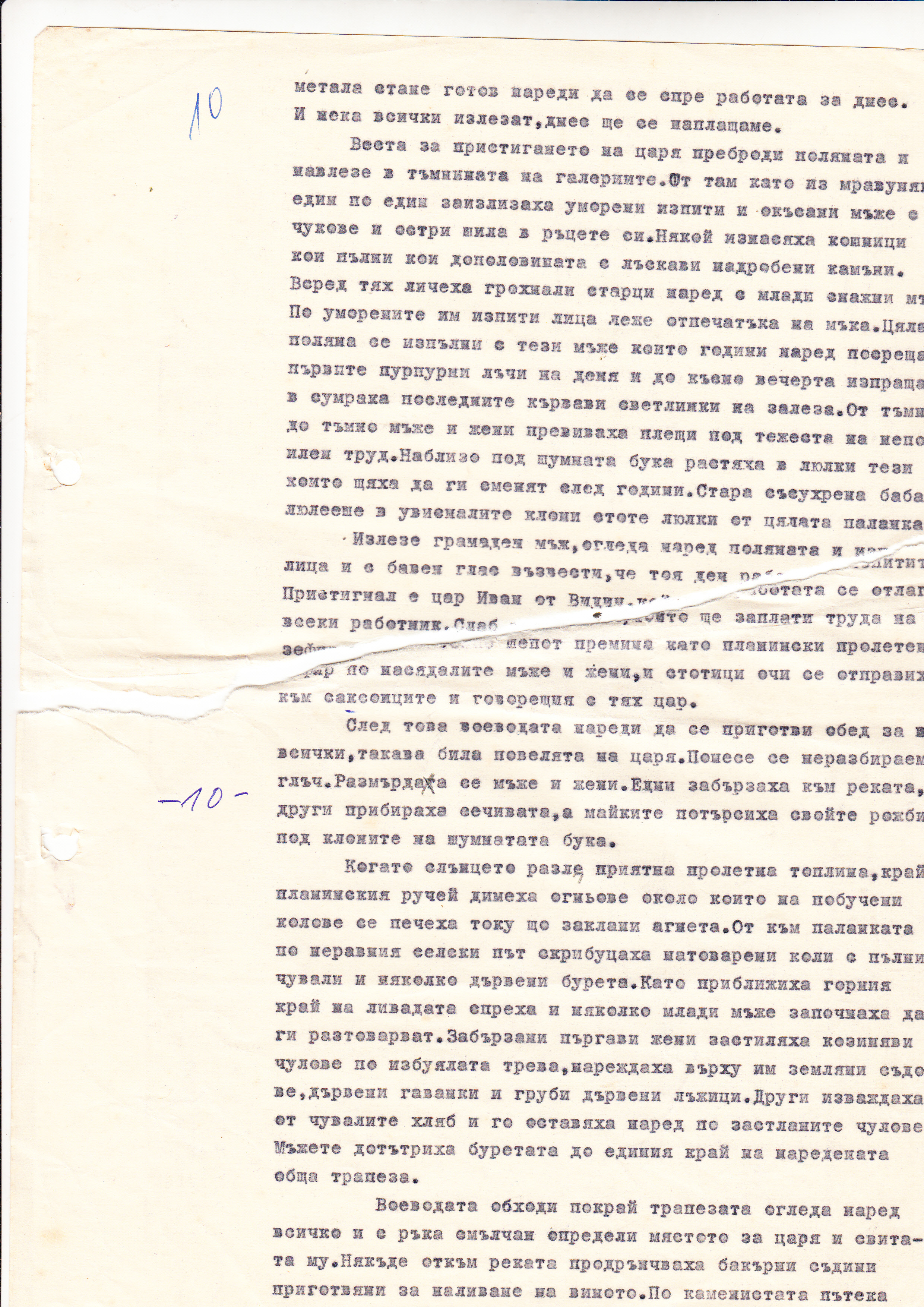 След това воеводата нареди да се приготви обед за всички, такава била повелята на цара. Понесе се неразбираем глъч. Размърдаха се мъже и жени. Едни забързаха към реката, други прибраха сечивата’ а майките потърсиха свойте рожби под клоните на шумнатата бука.