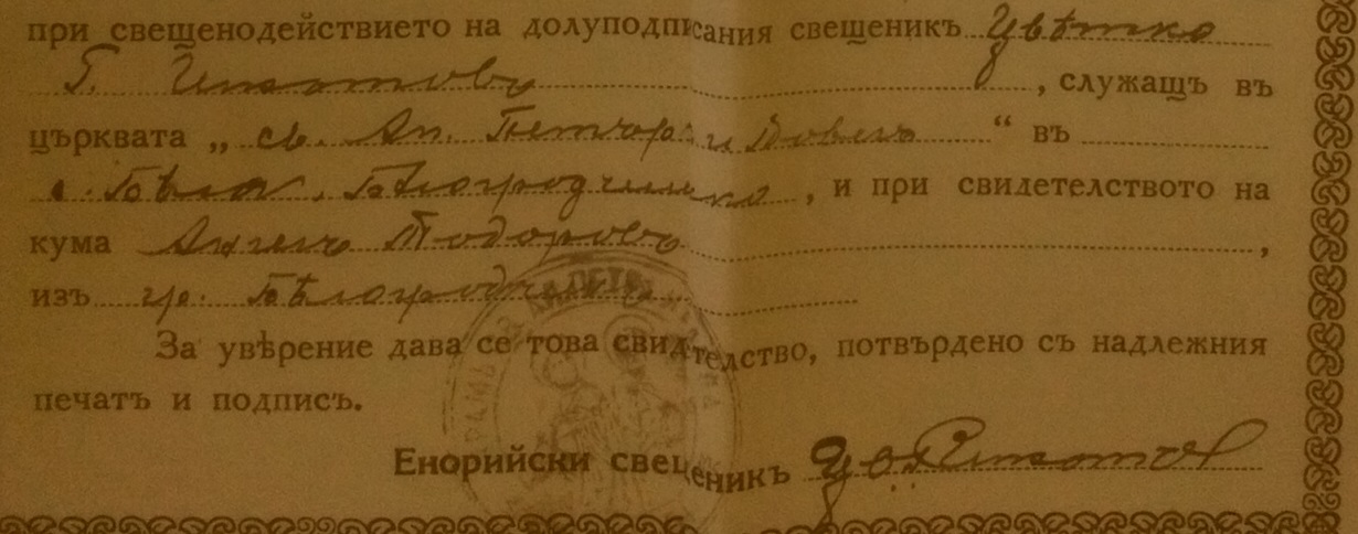 Кум: Ангел Тодоров, и кръстник на Митко, на когото благодаря за информацията и снимките, а така също и за – БЕЛСКИТЕ РОДОВИ ХРОНИКИ.