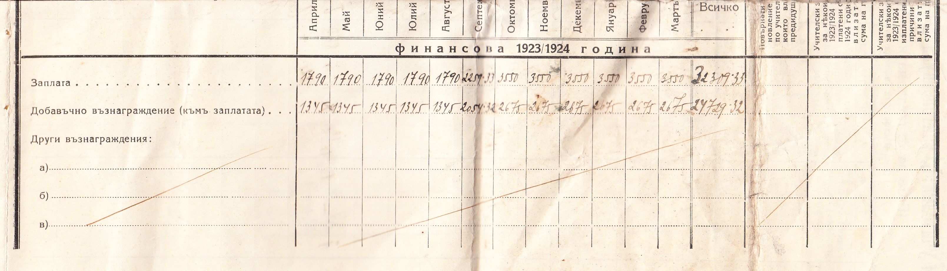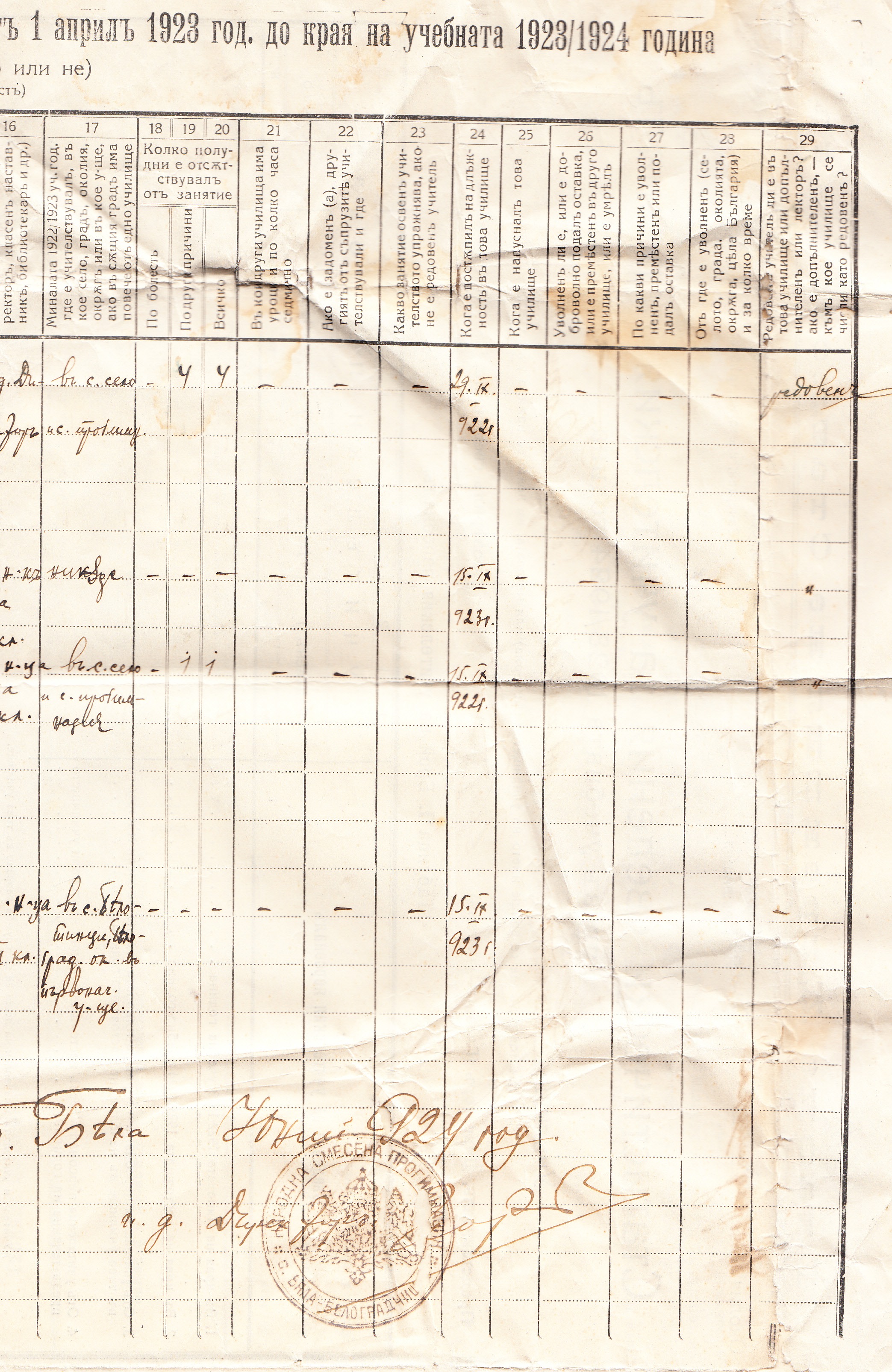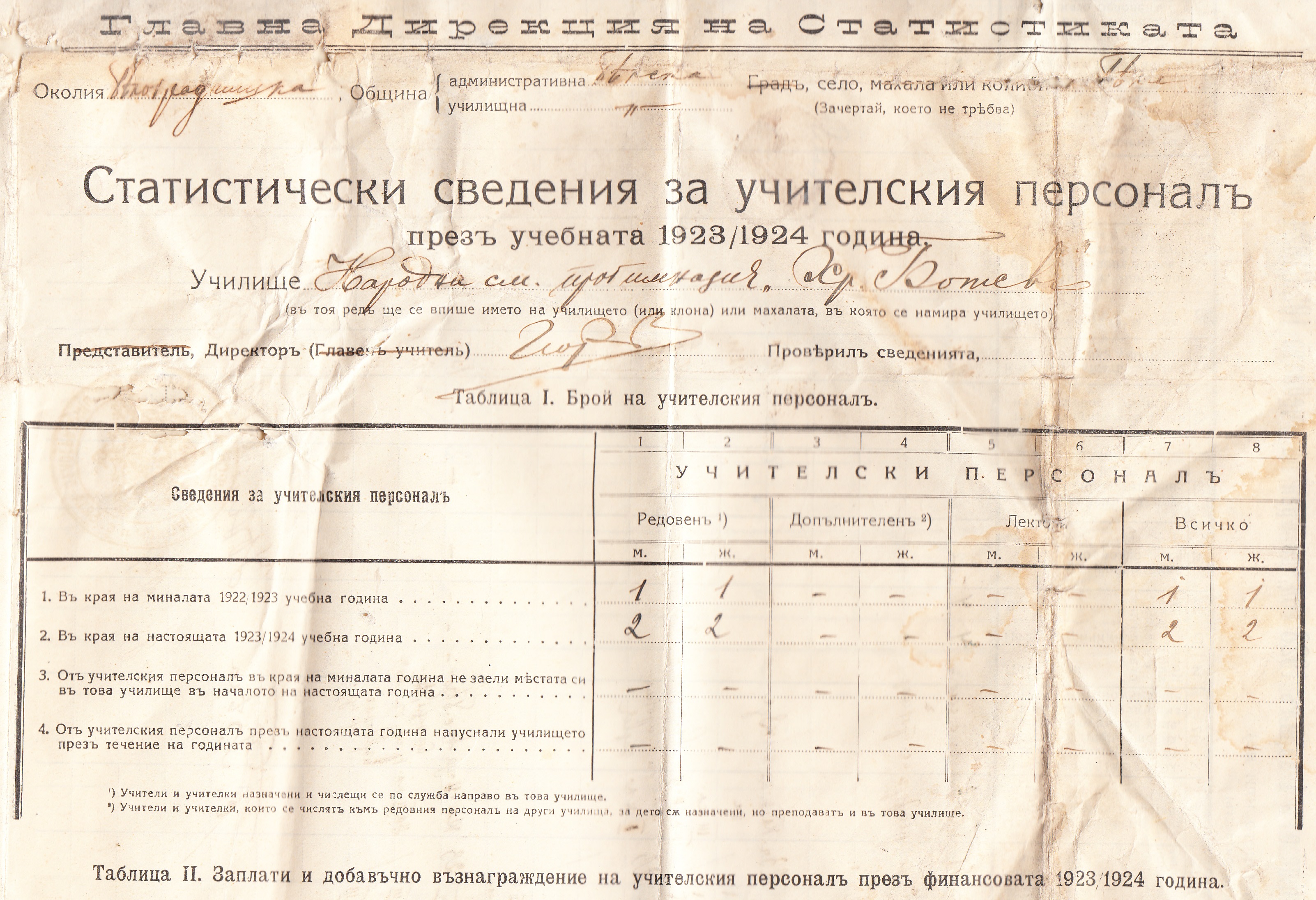Статистически Сведения за учителския персонал през учебната 1923/24 година.
