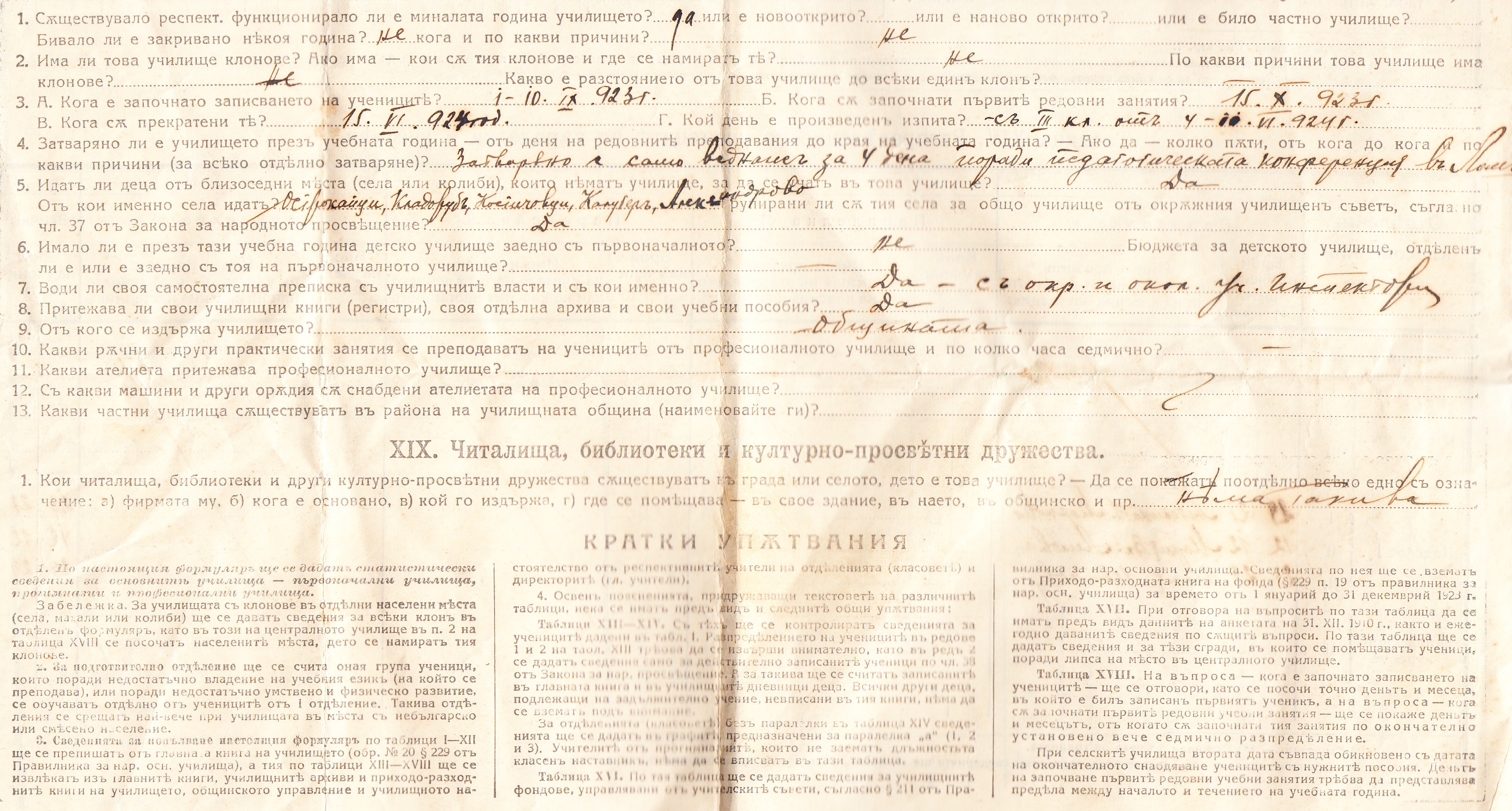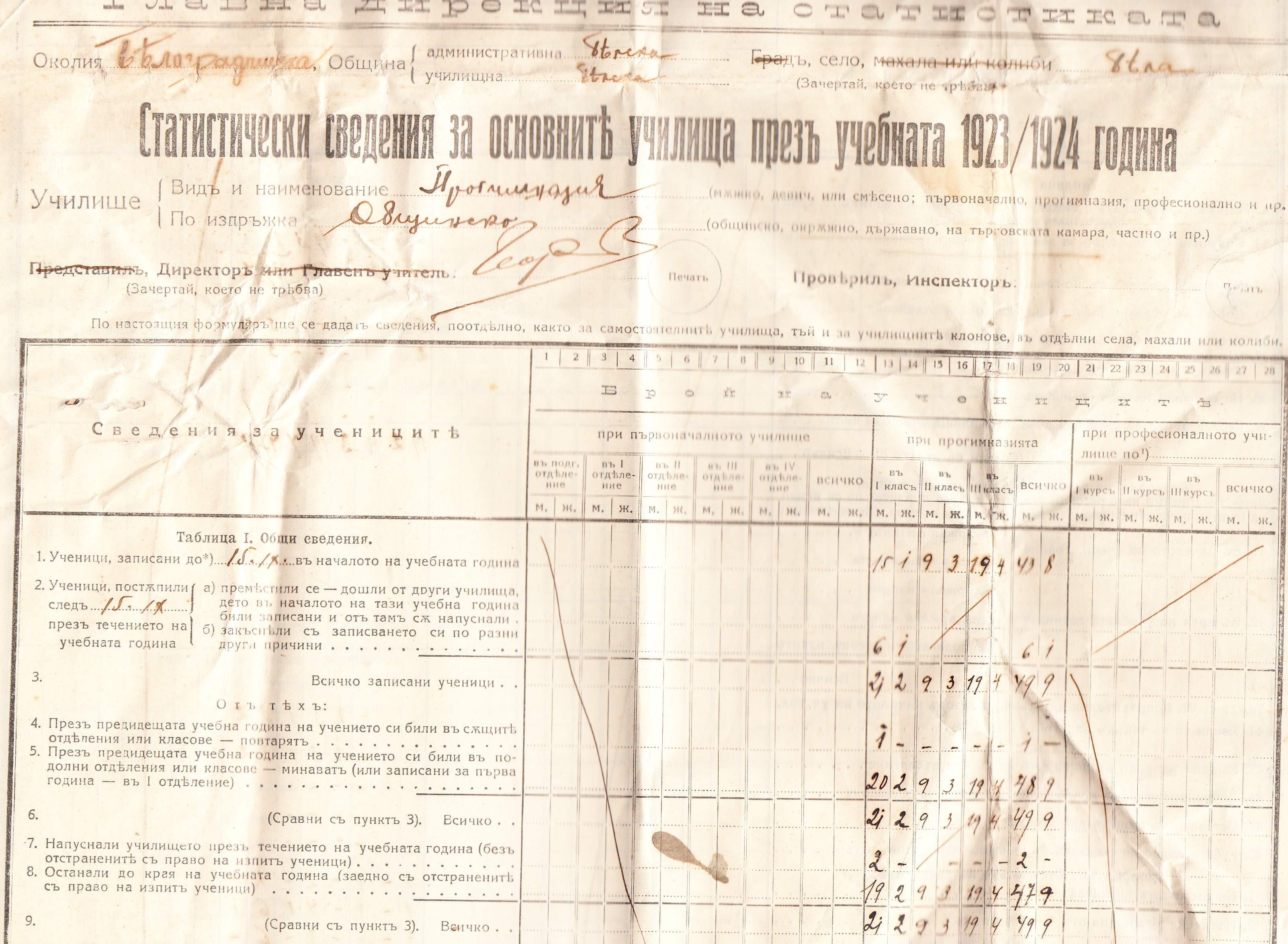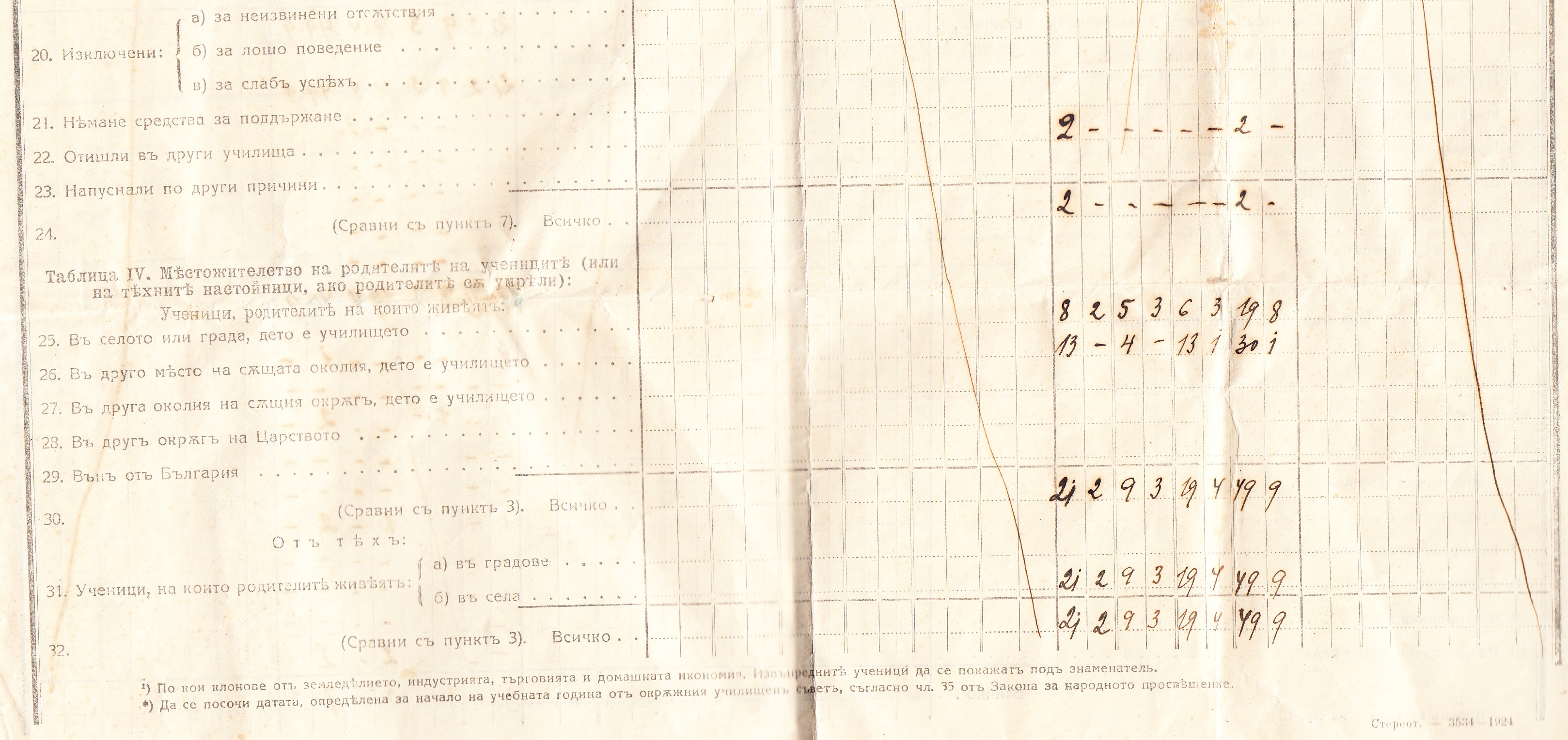 Статистически Сведения за основните училища през 1923/24 година – Образец Б