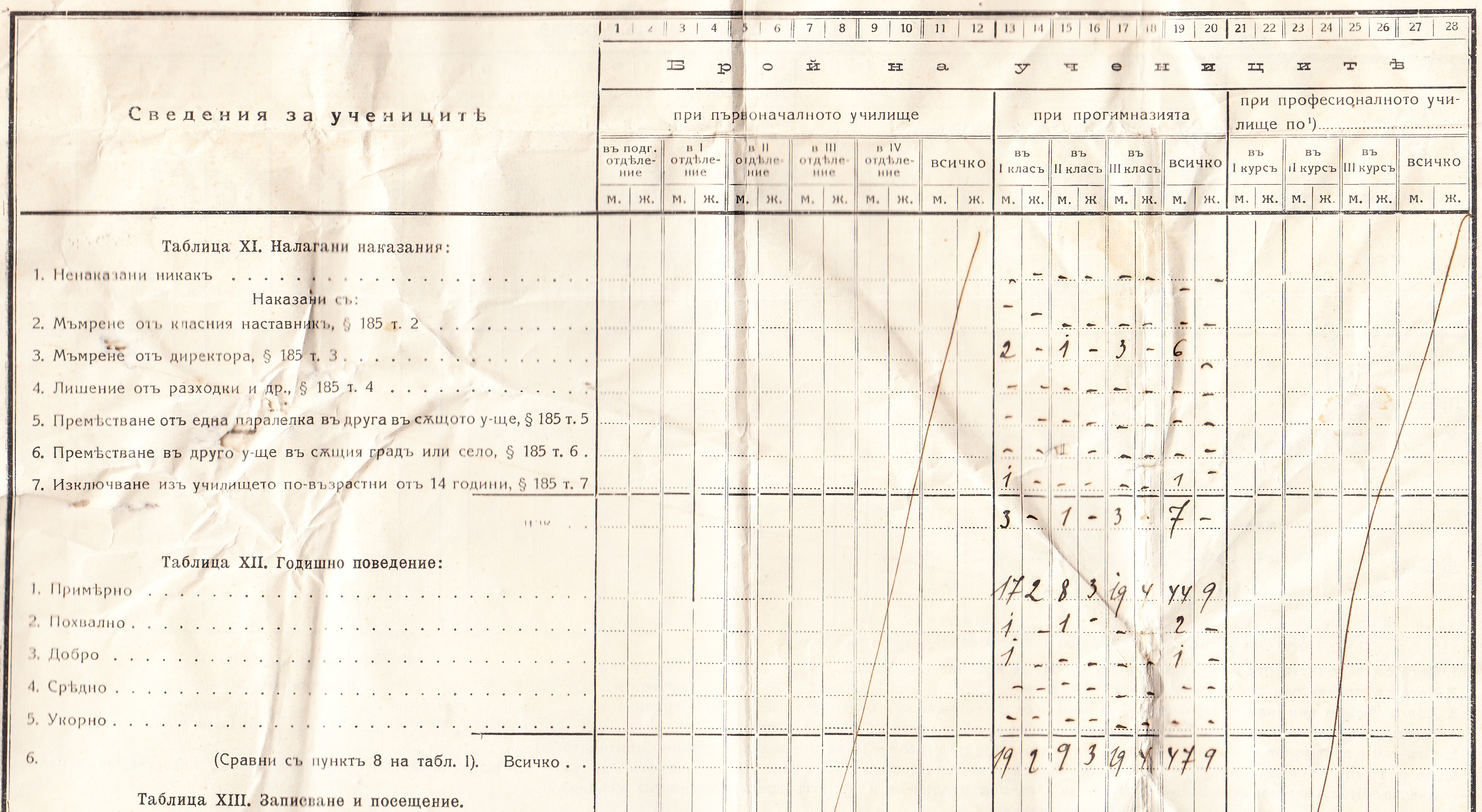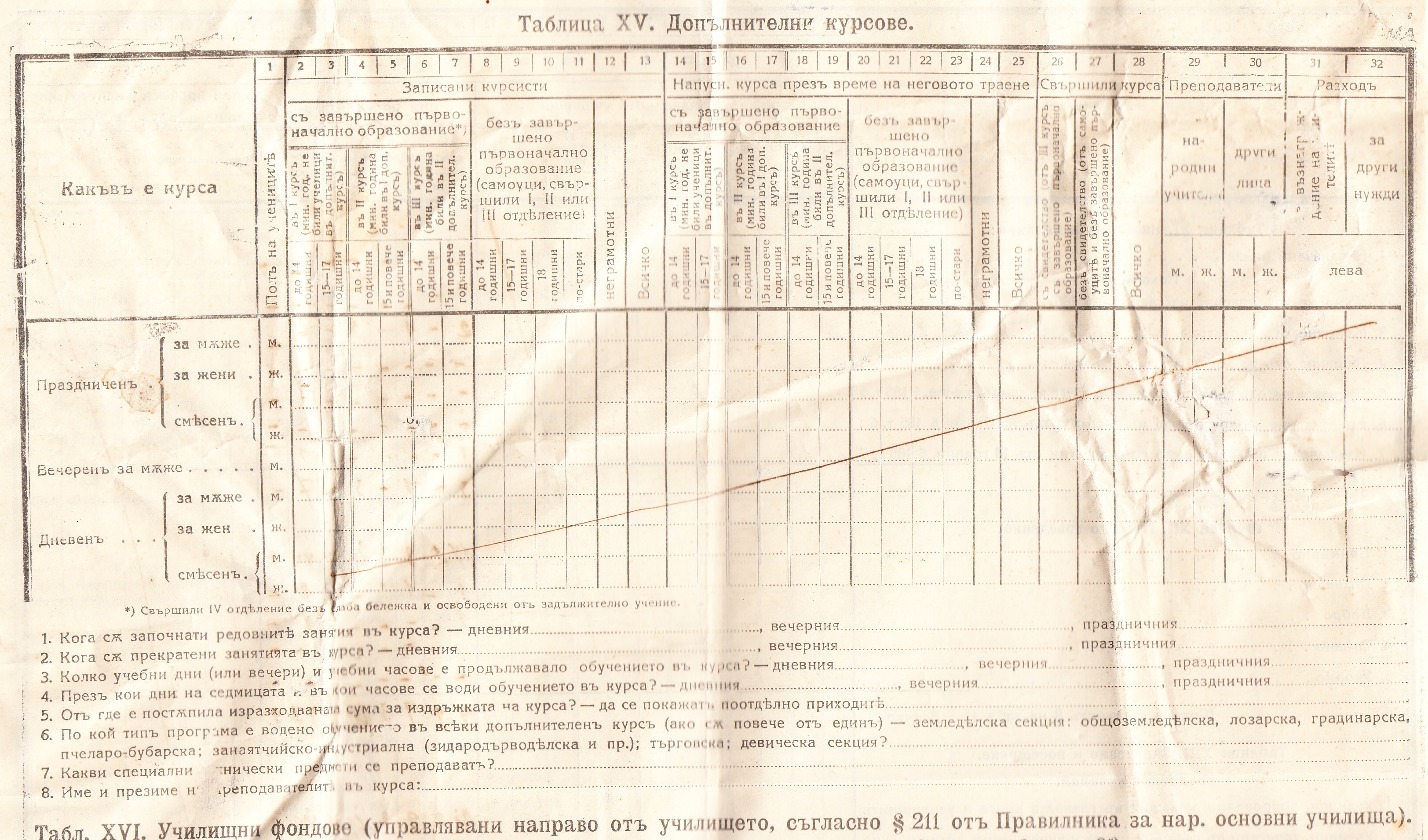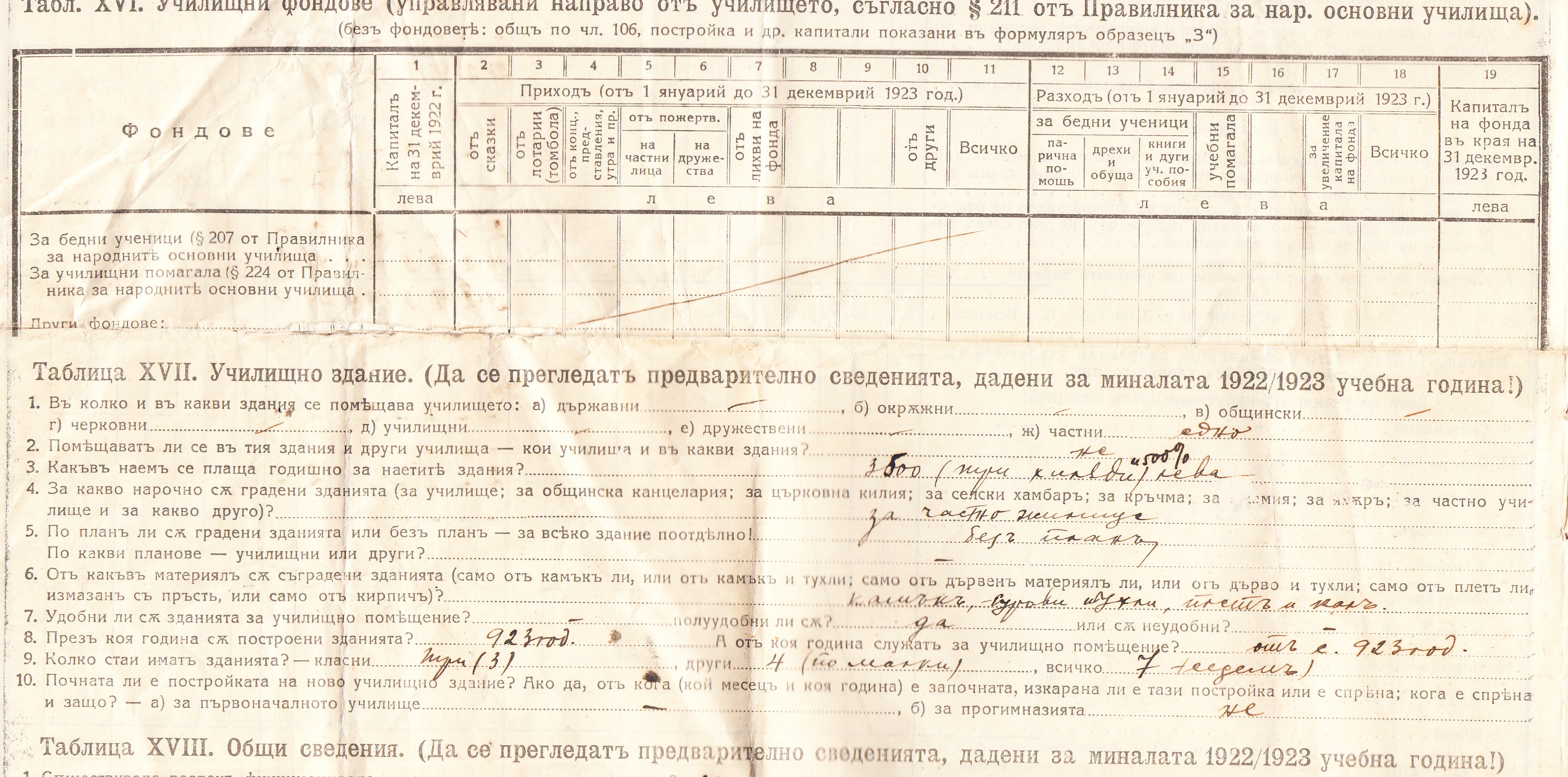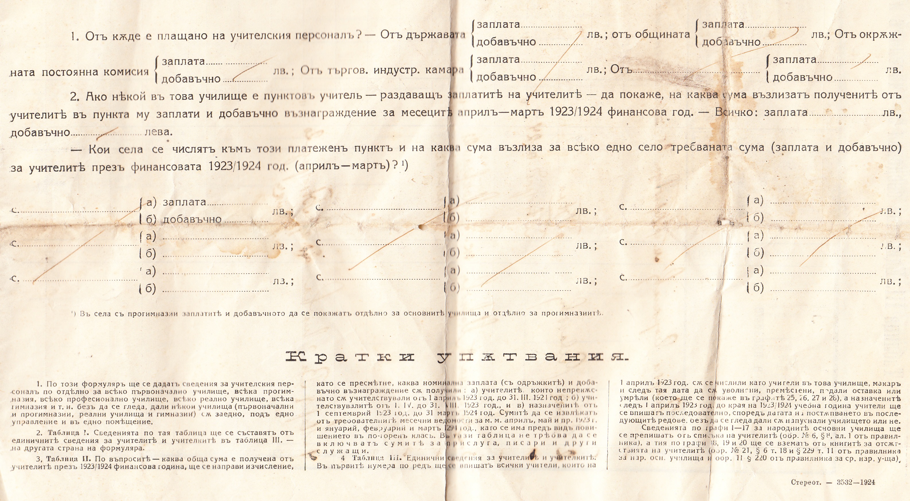 Статистически Сведения за основните училища през 1923/24 година – Образец Б