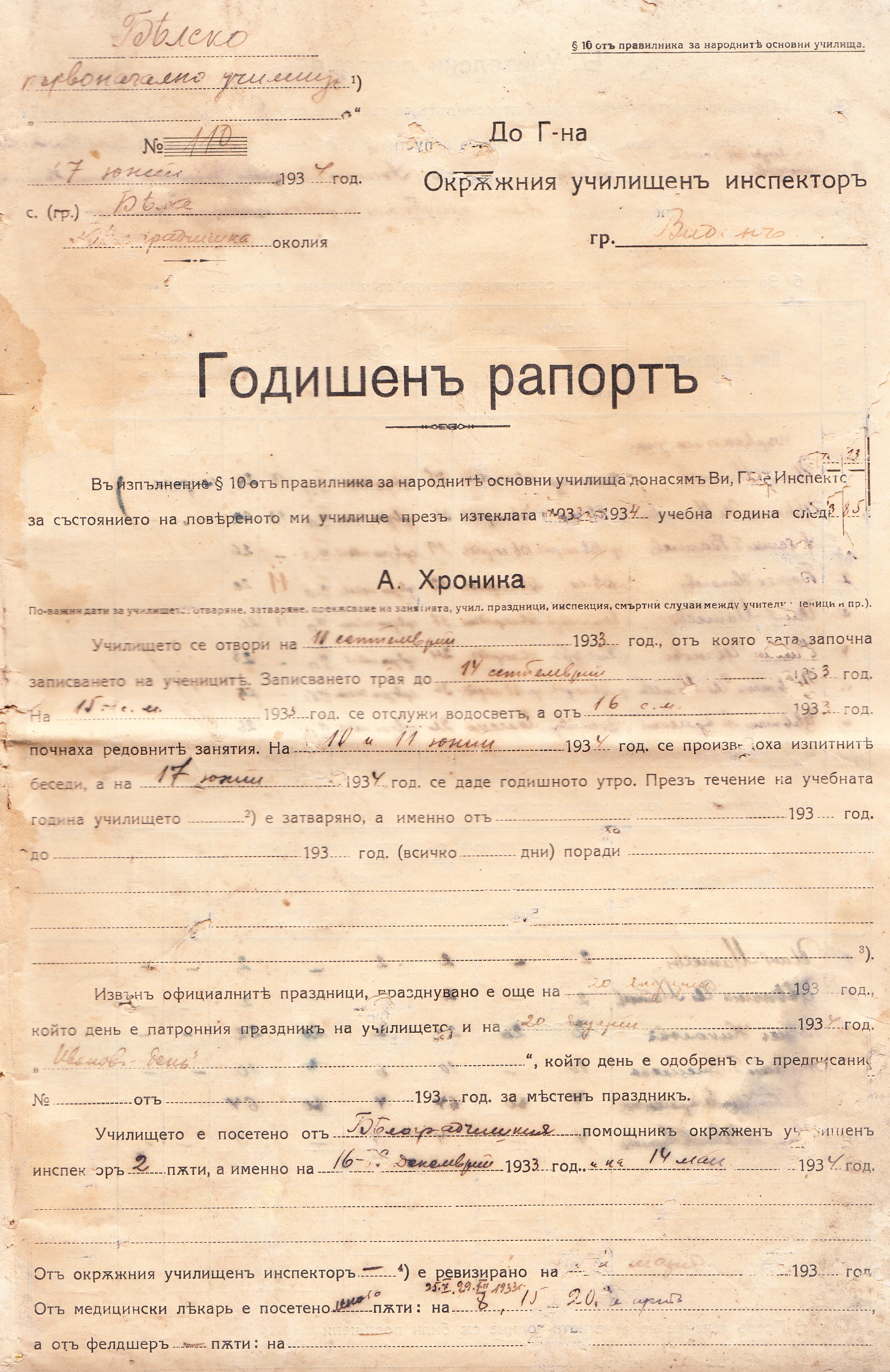 Годишен Рапорт N 110 / 17.07.1934 г.