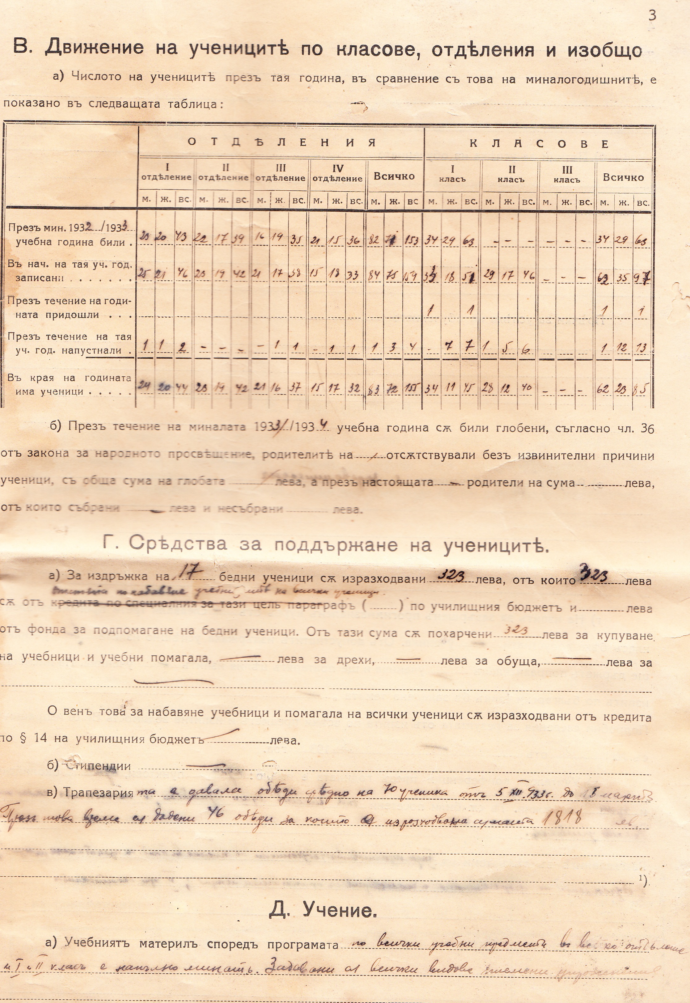 За издръжка на 17 бедни ученици са изразходвани 323 лева, от които 323 лева са остатък от набавянето на учебници на всички ученици.