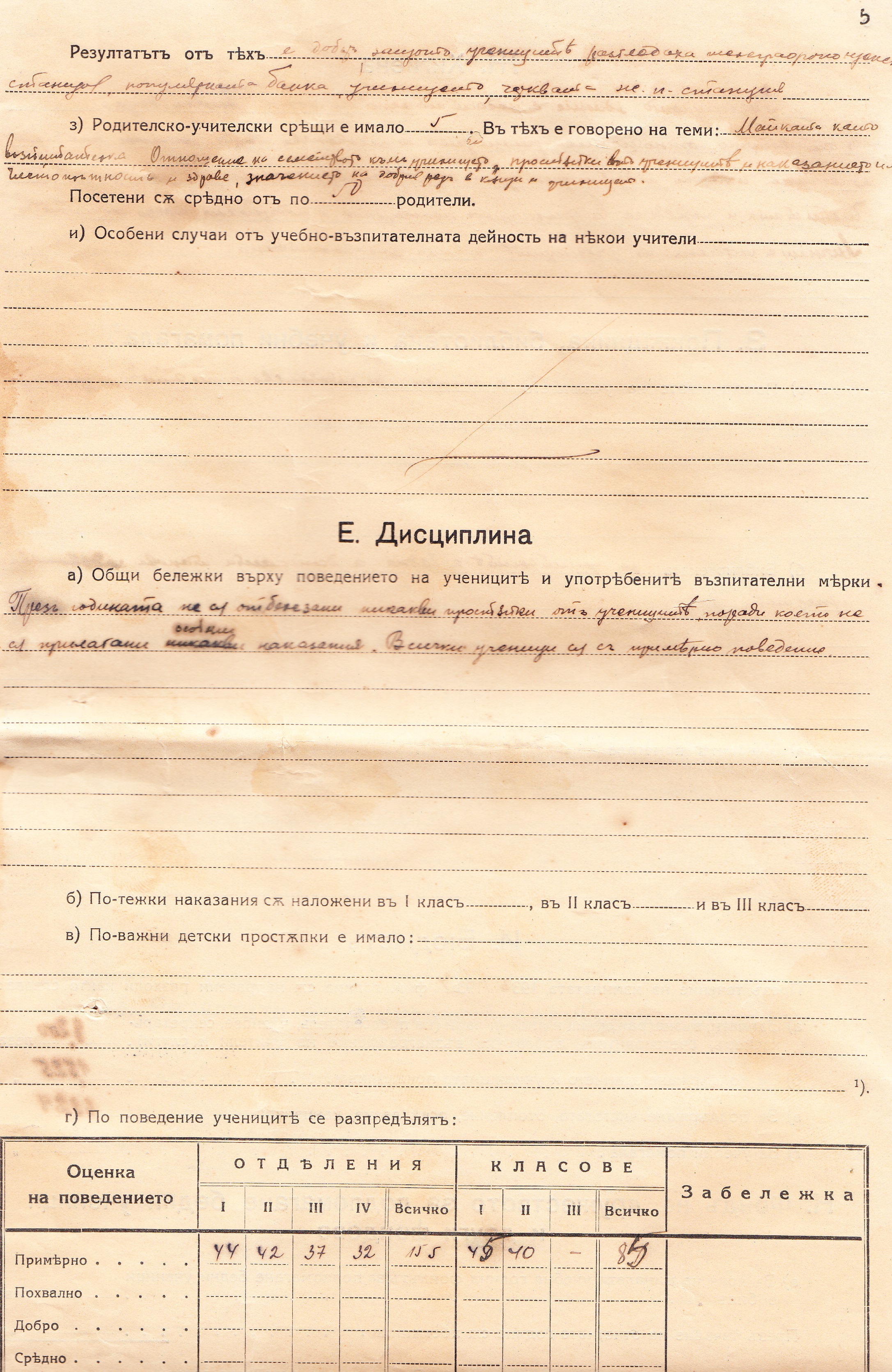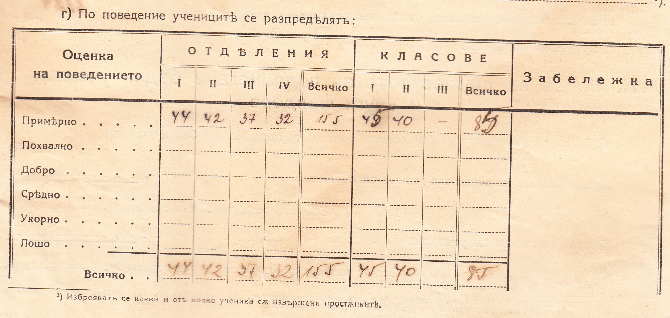 В края на учебната година в отделенията са учели 155 ученика, а в класовете 1 до 3 ти – 85 ученика.