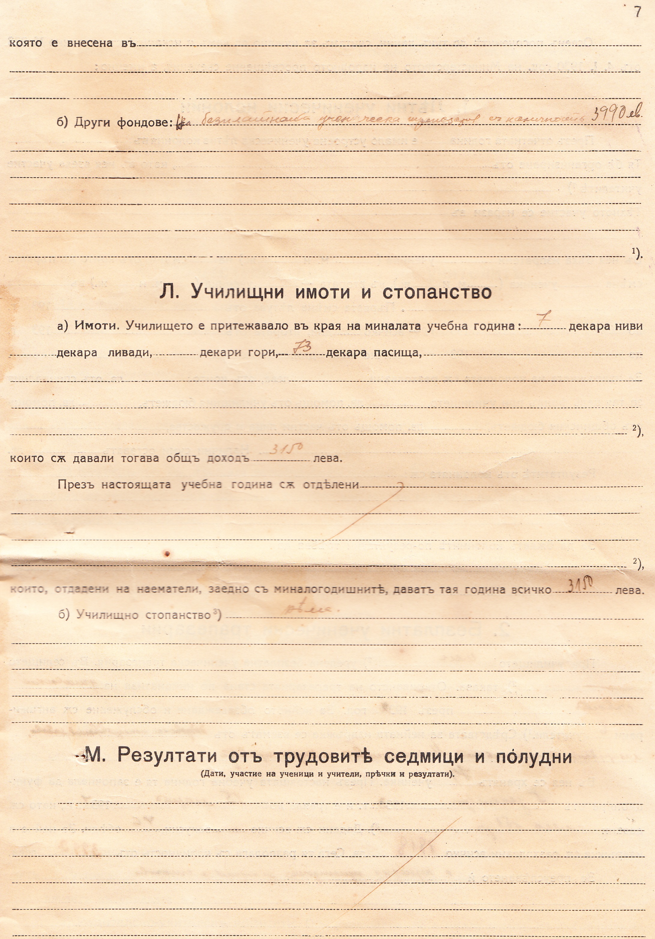 Имоти: 7 декара ниви, 73 декара пасища – всичко 3150 лв.