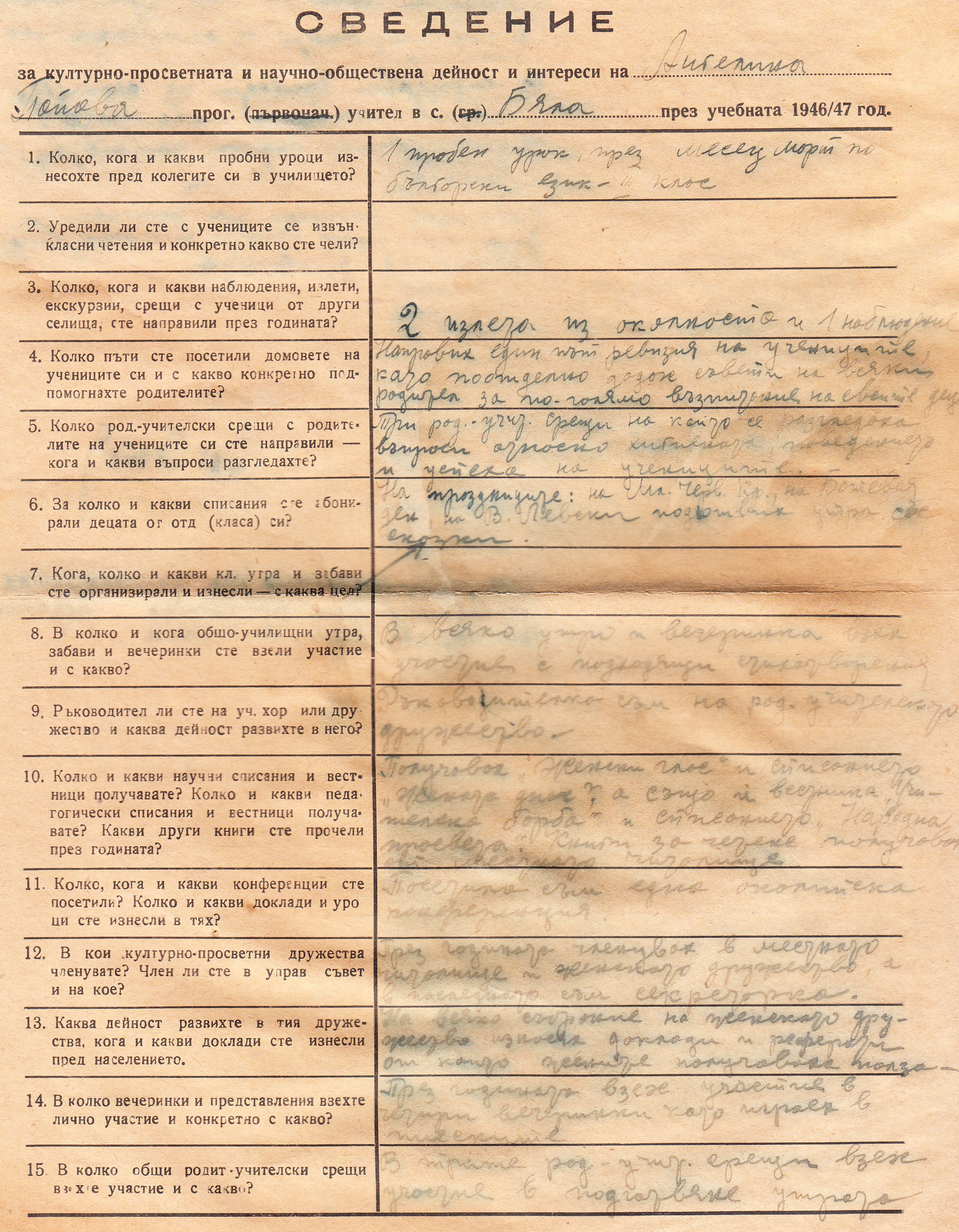 Сведение с.Бела 1946/47 година.