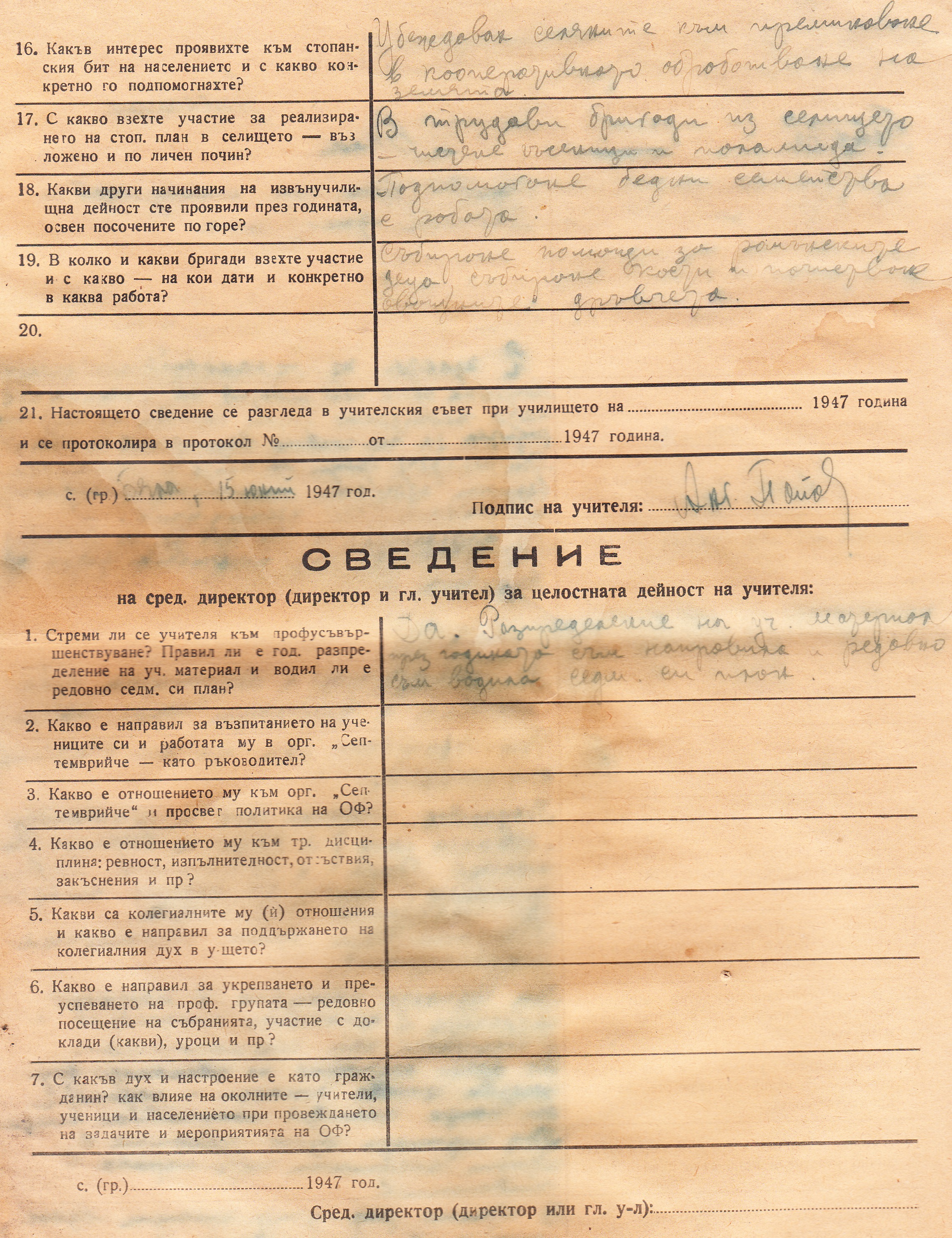 Учителски конференции през годината: Една пунктова, една околийска и една окръжна.