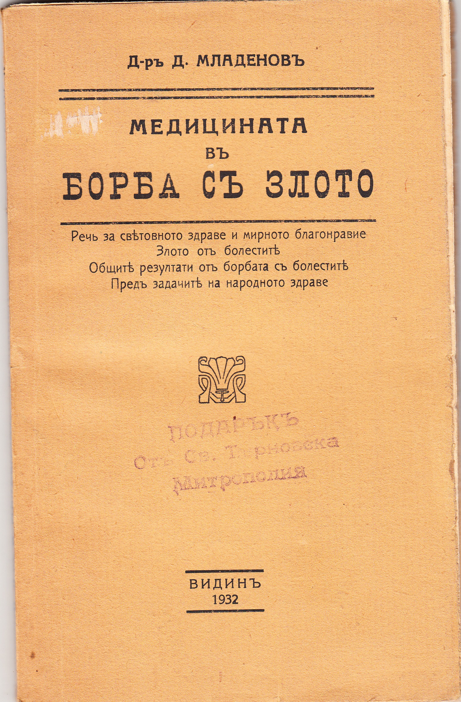 МЕДИЦИНАТА В БОРБА С ЗЛОТО – Д-р Д.Младенов – Видин 1932 г.