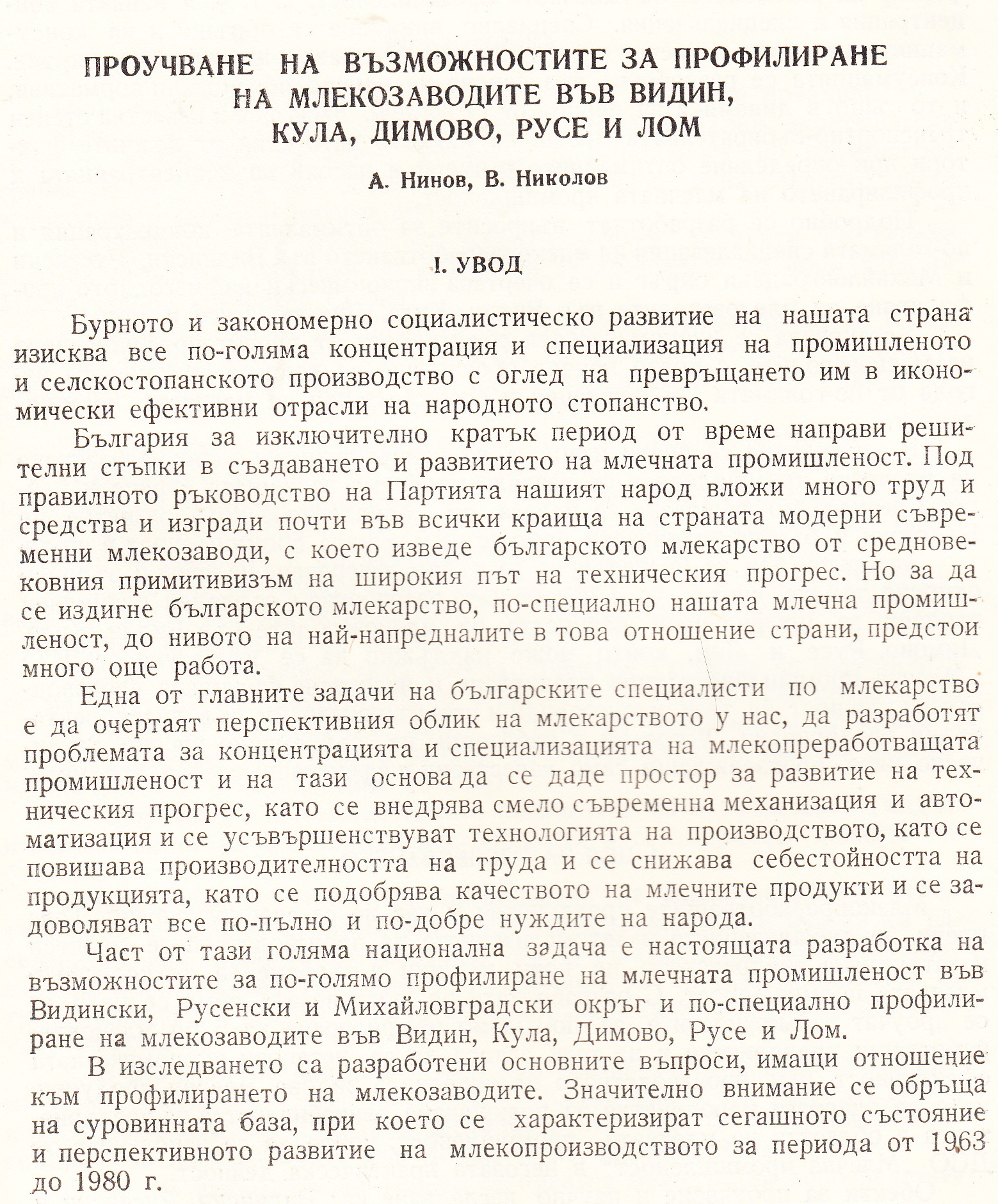 Профилиране на млекозавода гр.Димово и перспективи до 1980 г.