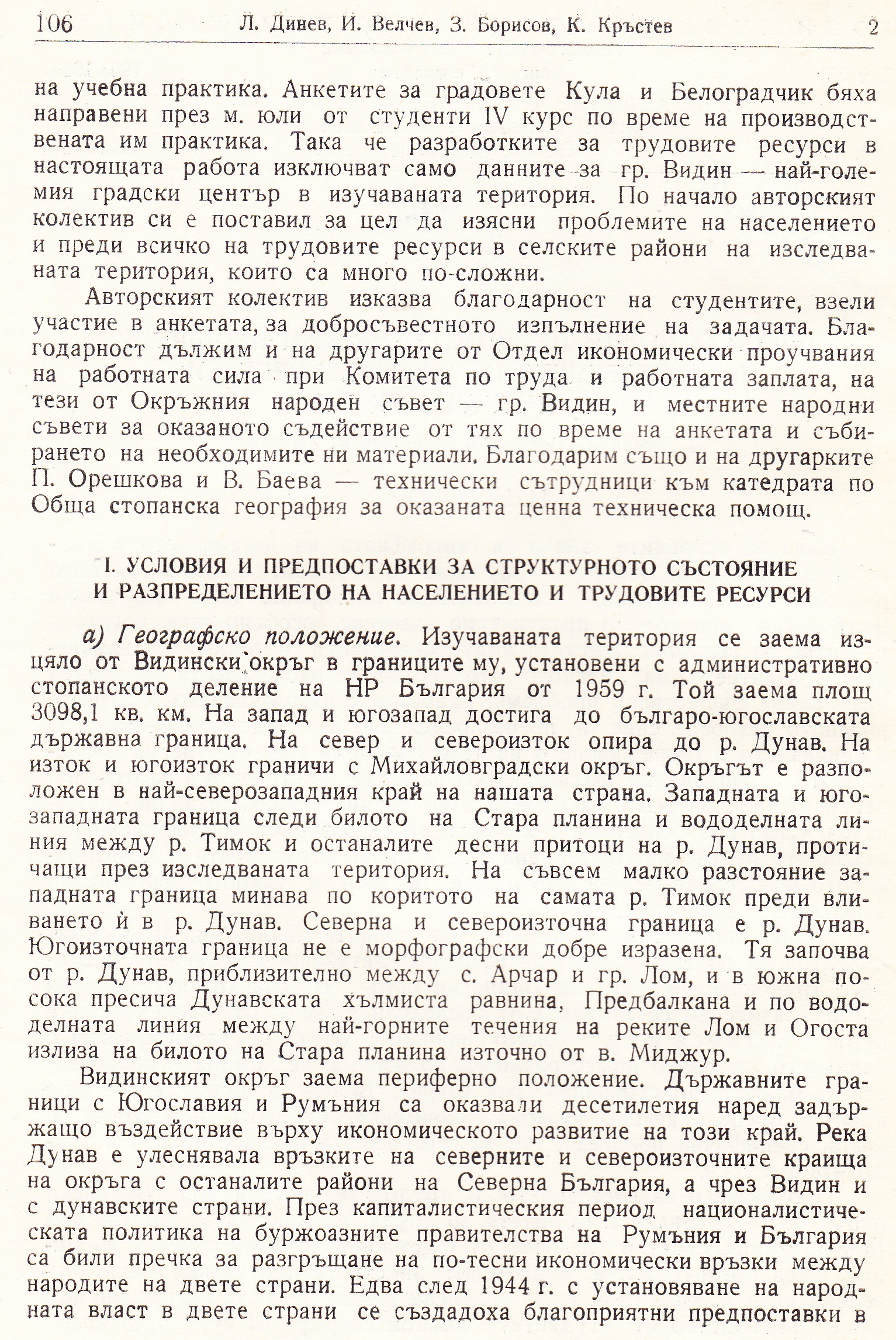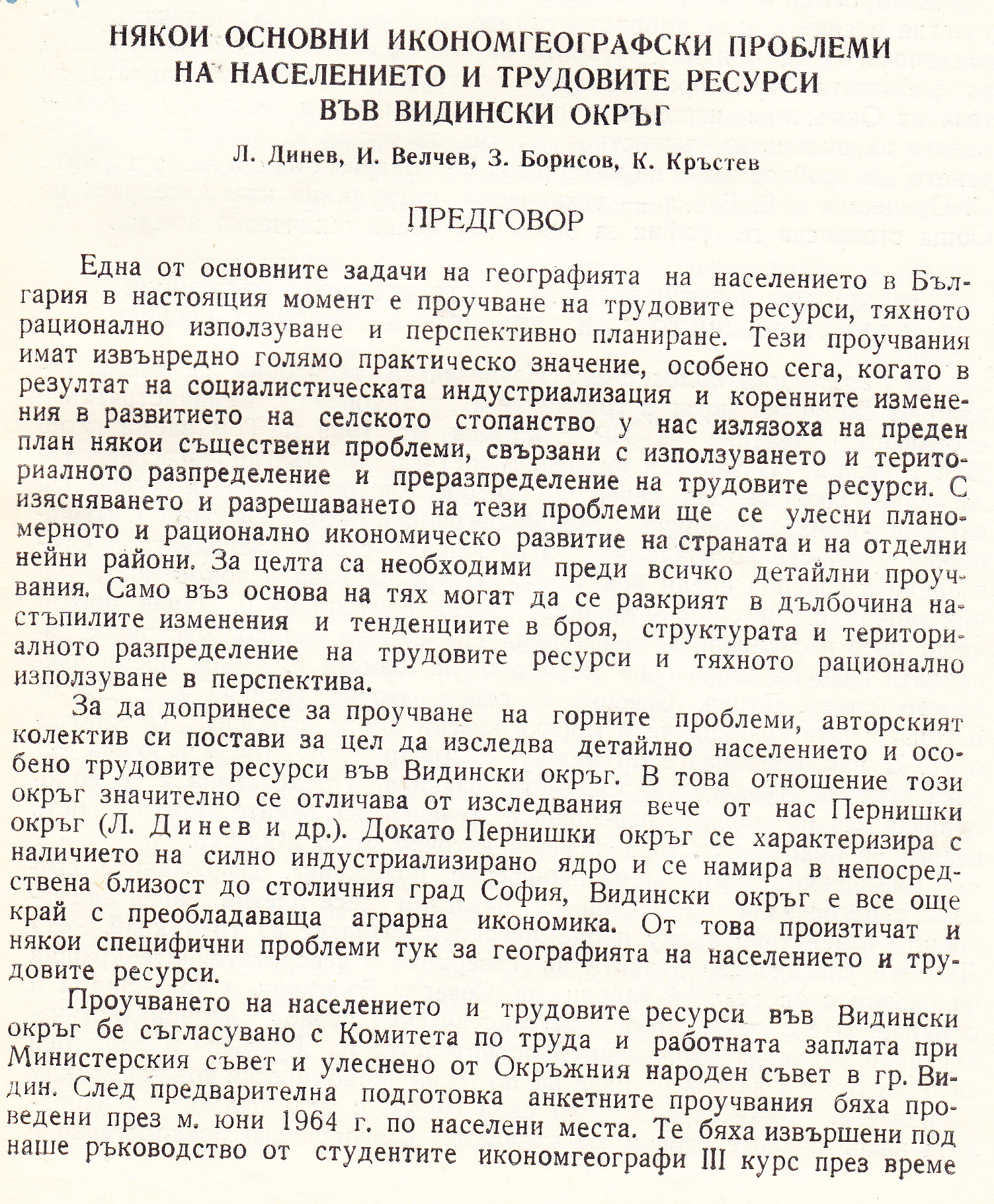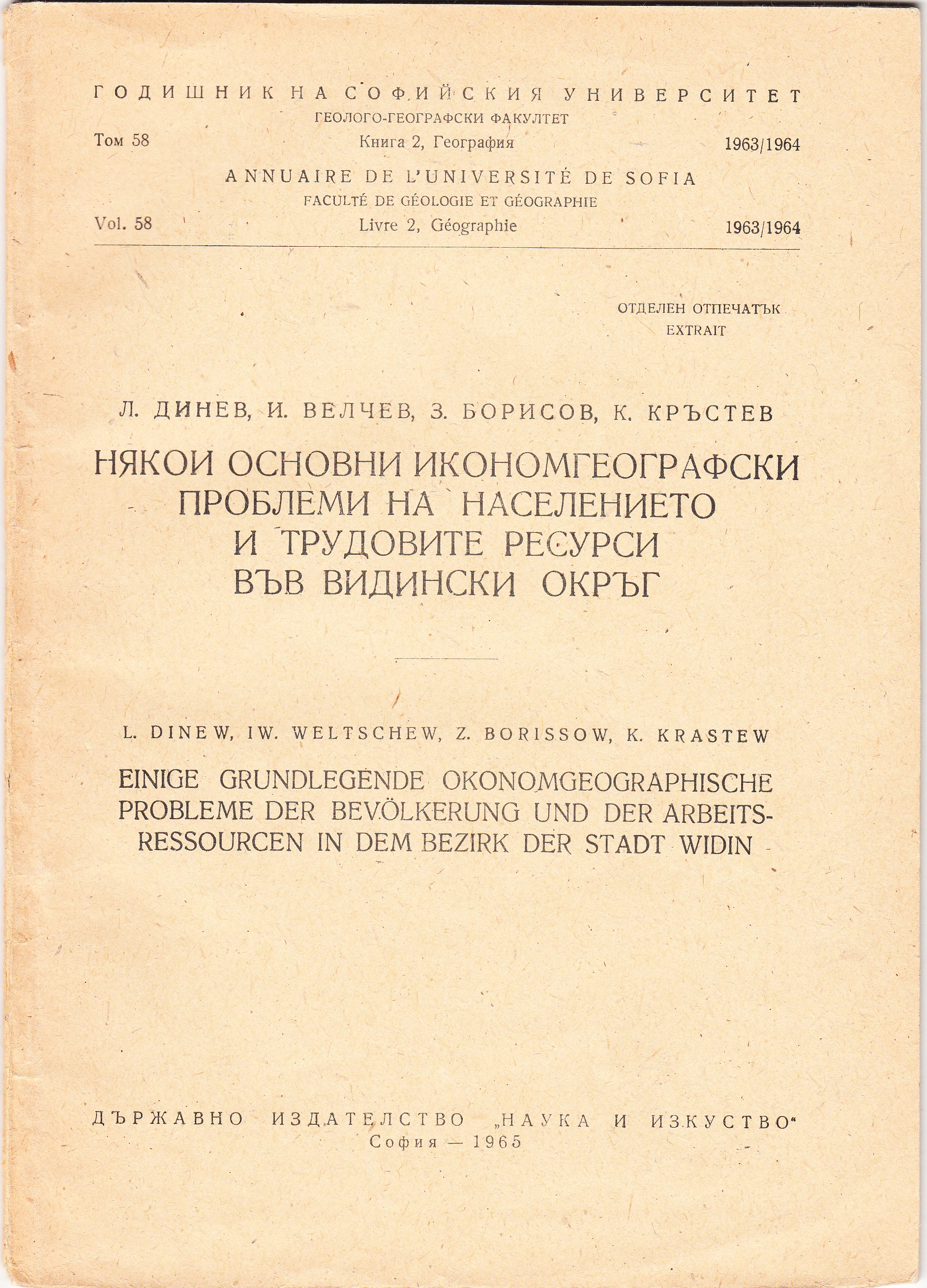 “ Някой основни икономгеографски проблеми на населението и трудовите ресурси във Видински окръг.“ – 1963/64 г.