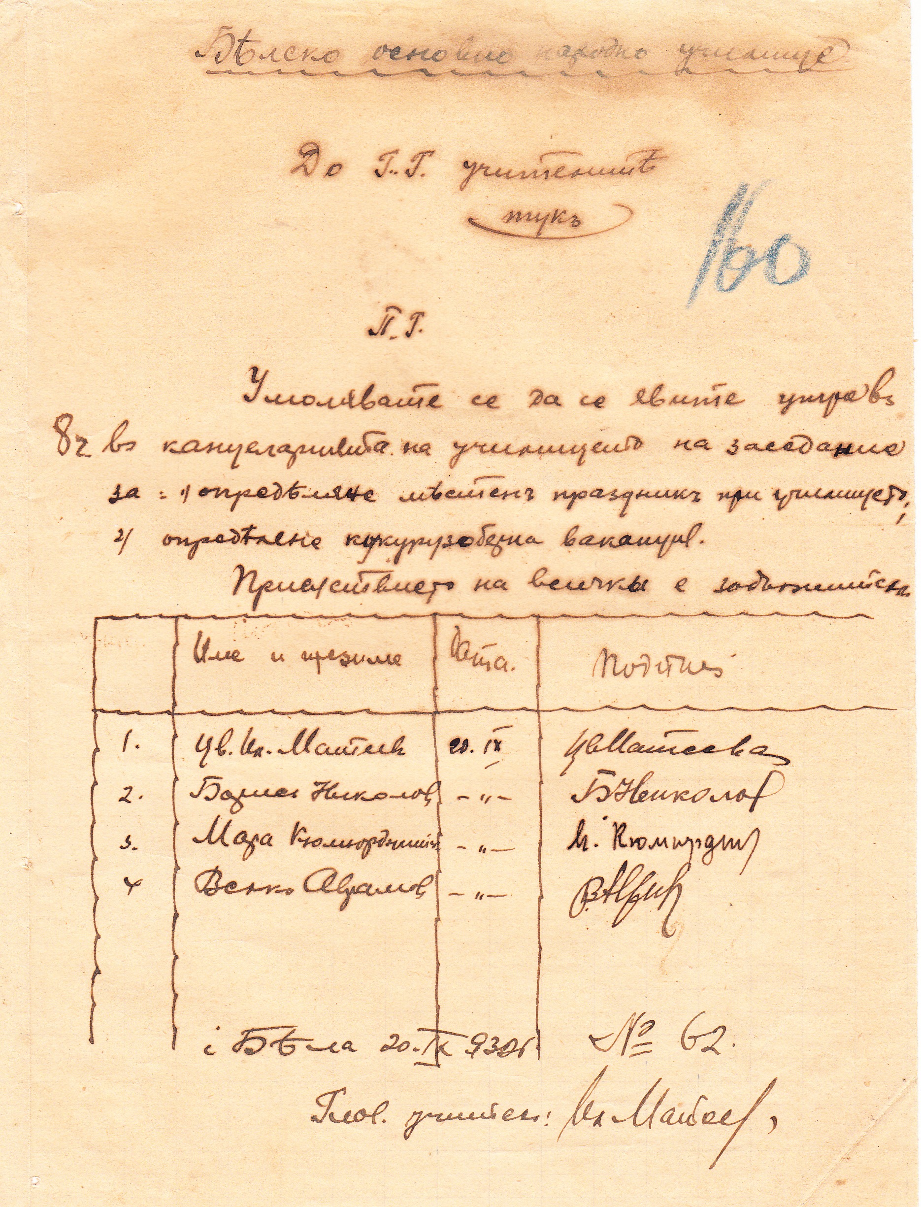 Заседание за определяне местен празник на Белското училище и определяне на Кукурузена ваканция.