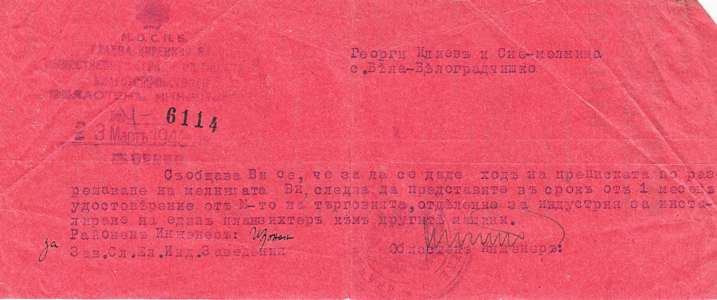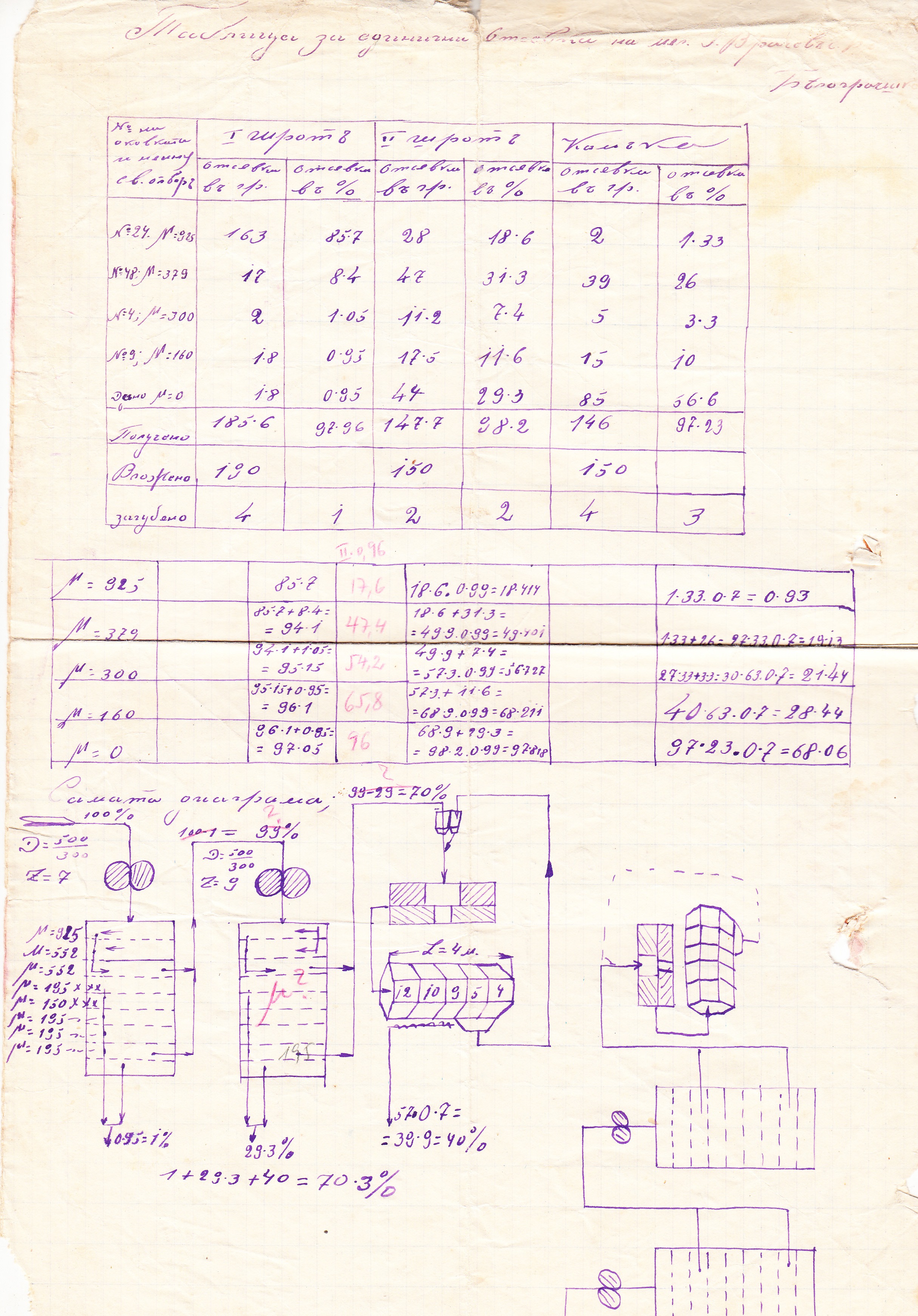 Таблица за единични отсевки в мелницата на Георги Врачков от с.Бела , Белоградчишко.