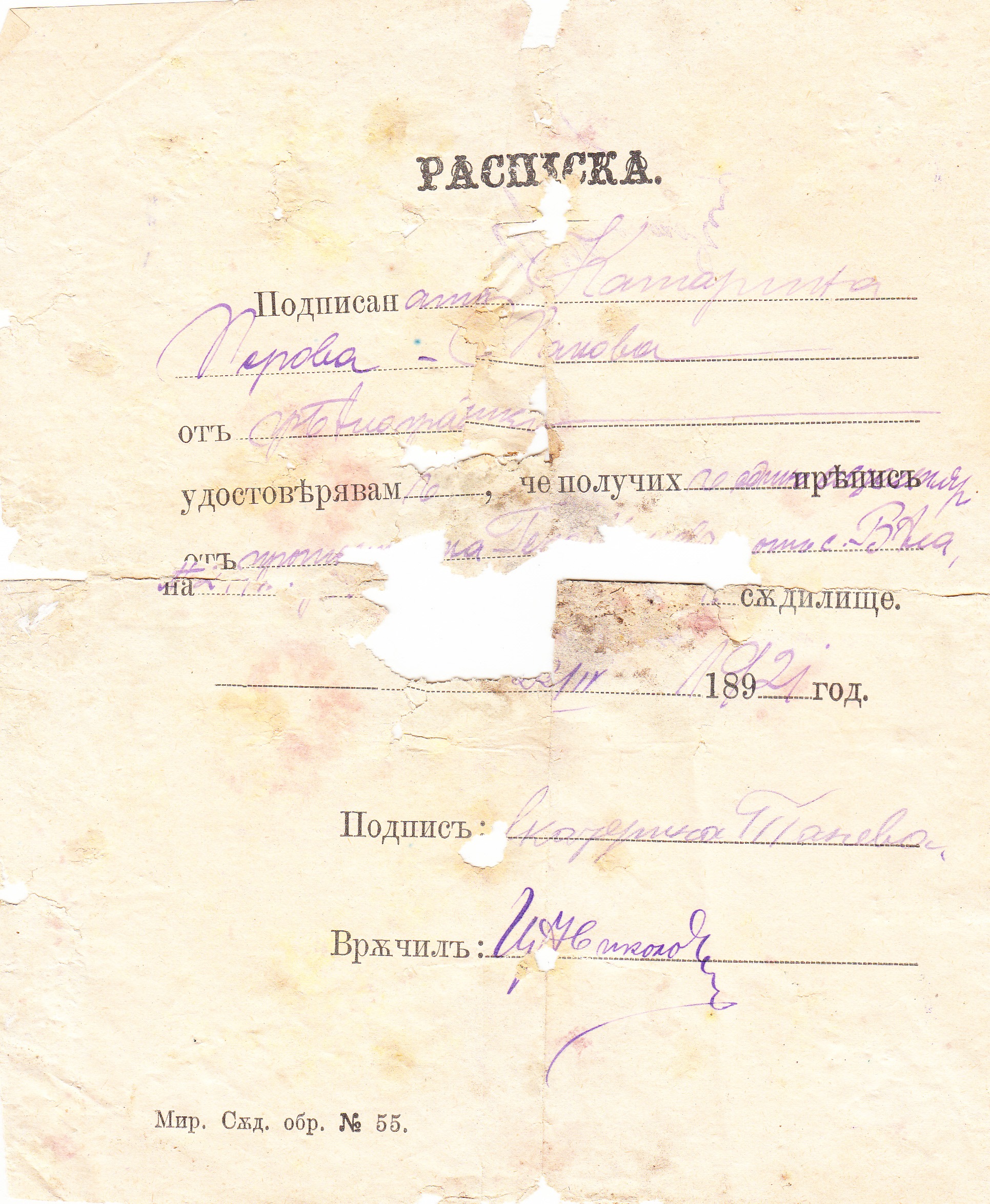 Връчил: Ц. Николов, 21.04.1921 год. гр. Белоградчик