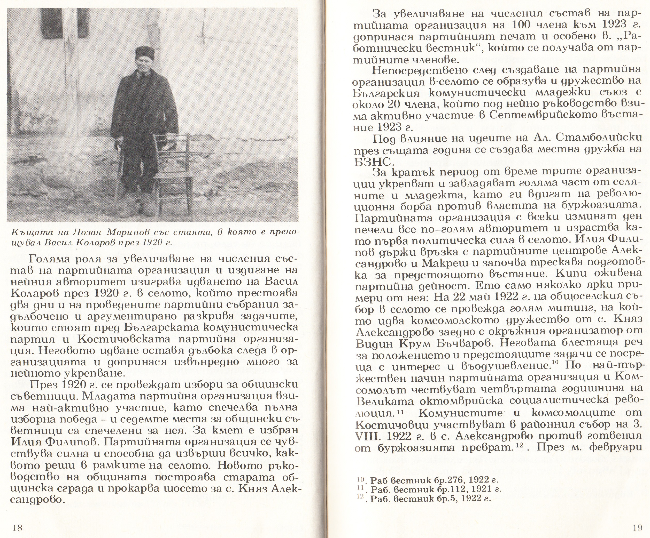 „…През 1922 година в селото пристига Васил Коларов,…. на 22 Май 1922 г. се провежда голям митинг на който идва комсомолското дружество от с.Княз Александрово и окръжния организатор от гр.Видин Крум Бъчваров….“