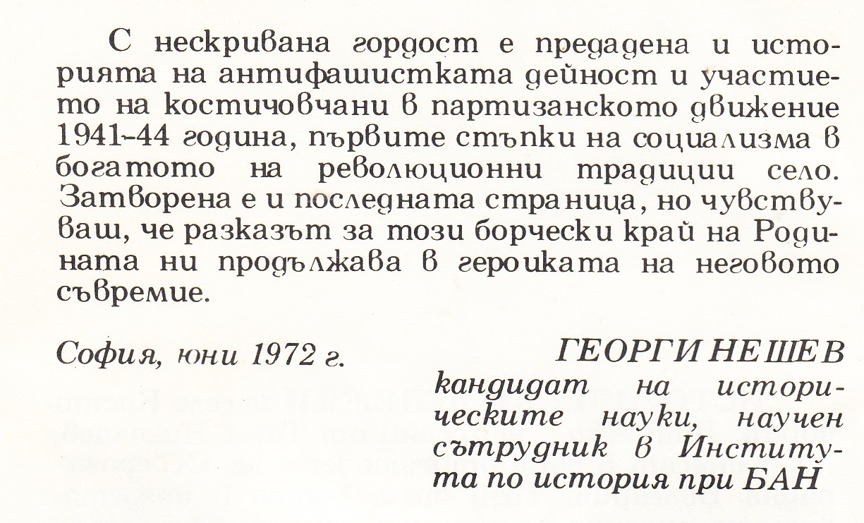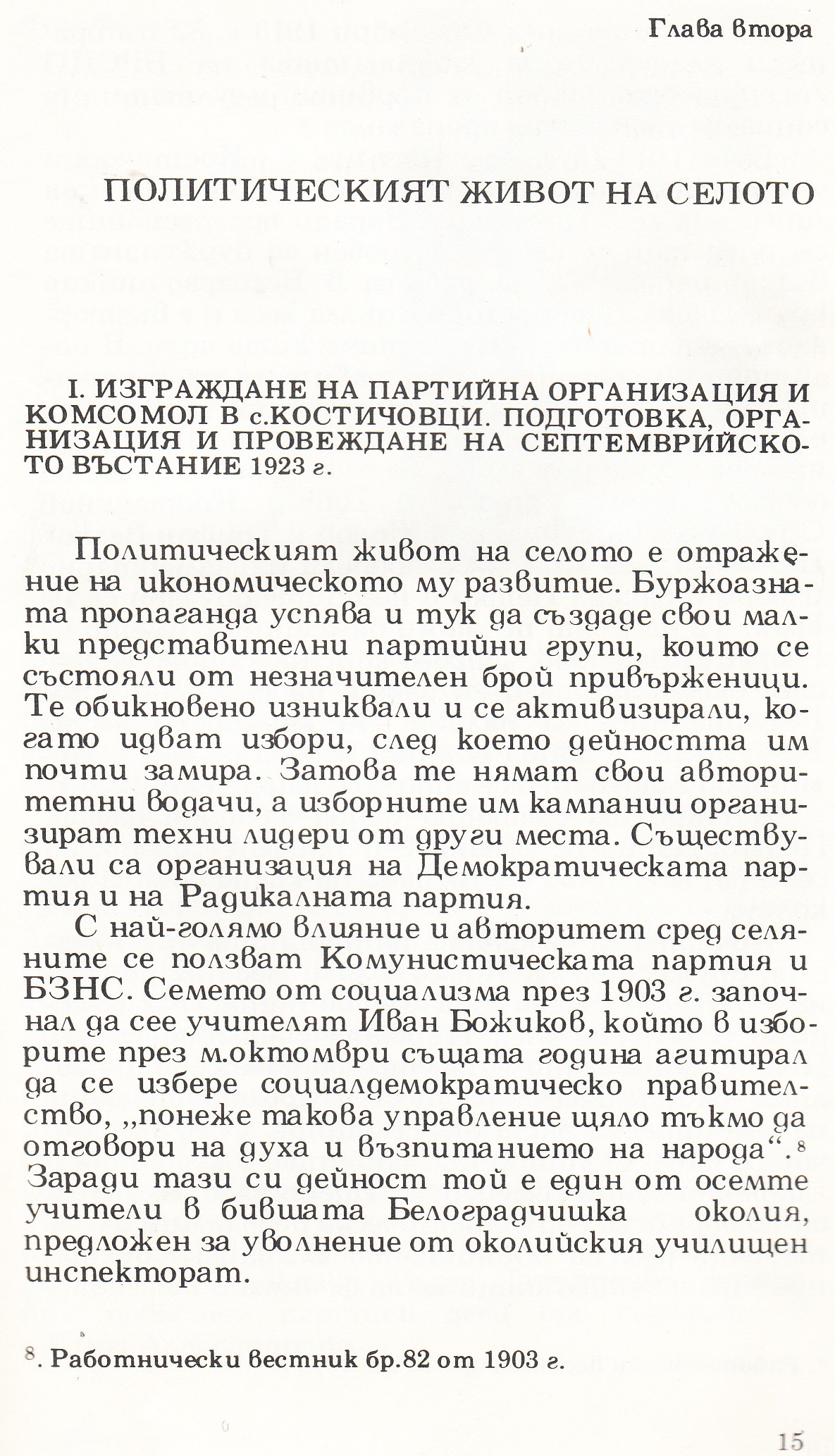 „.. В началото на м. Септември 1923 година в Костичовци пристигат братята Крум и Асен Бъчварови….“