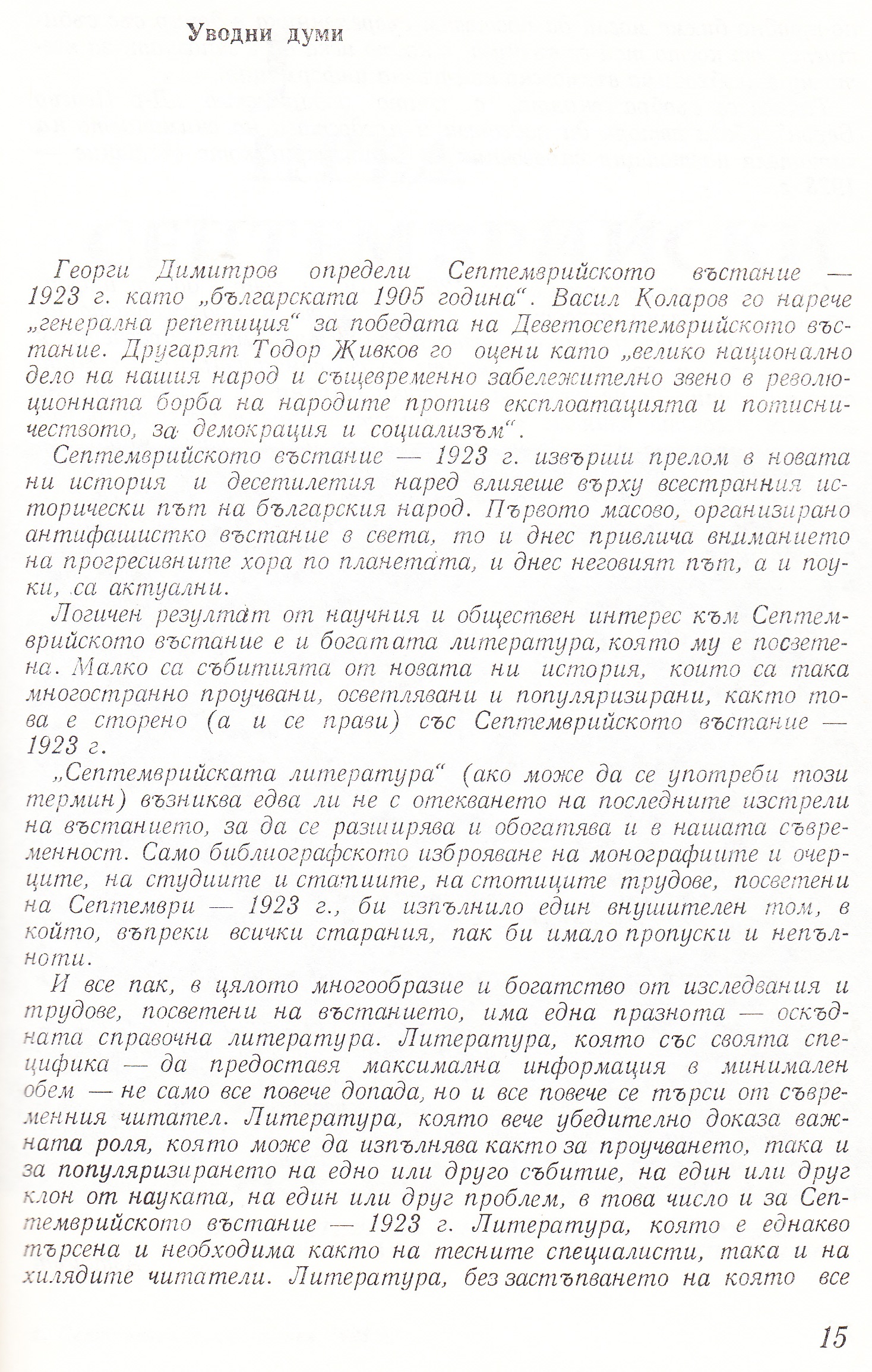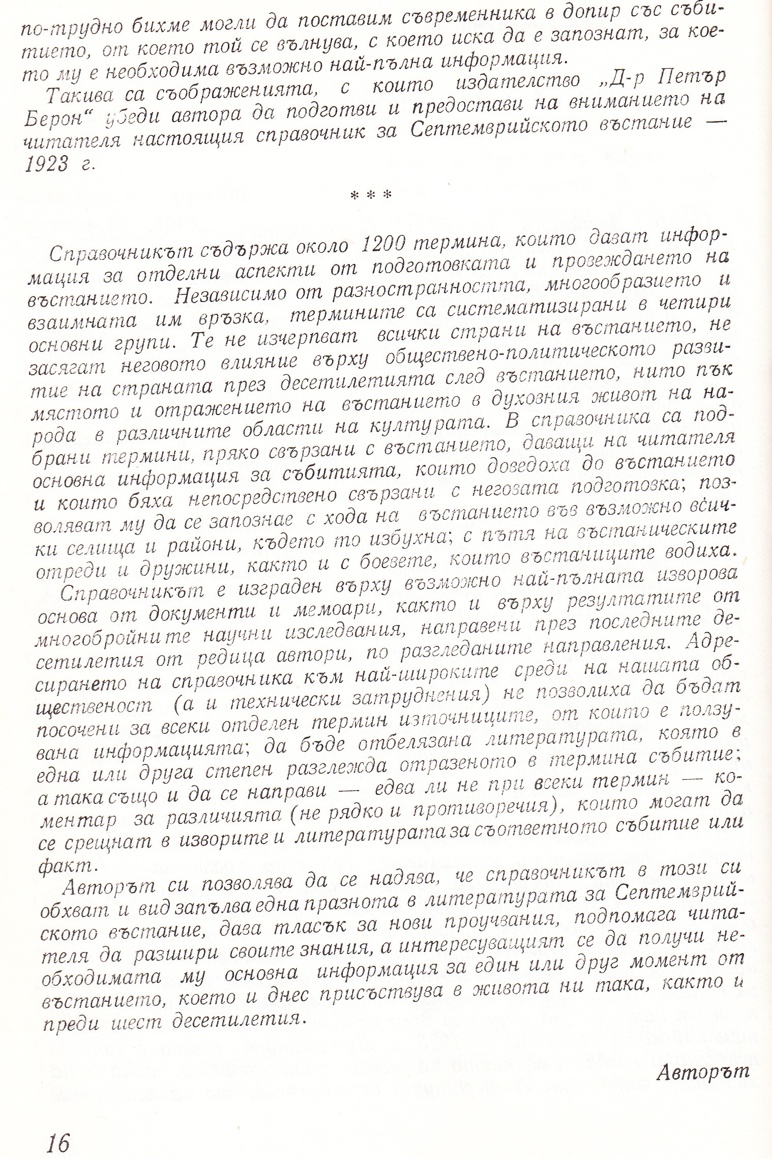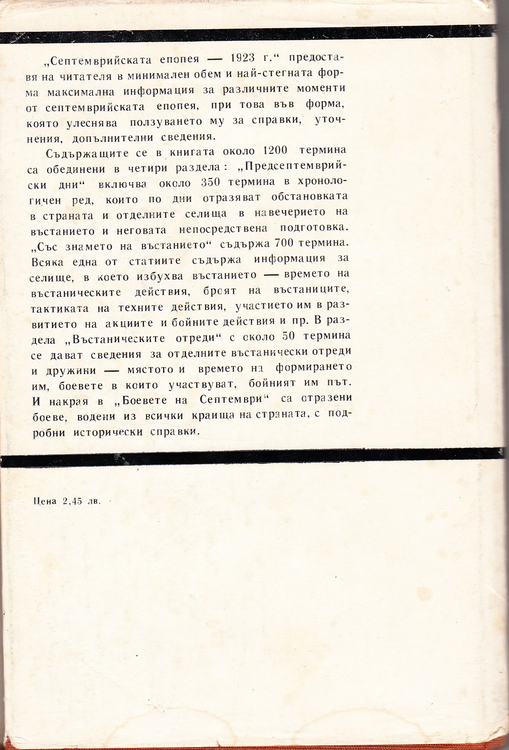 „Септемврийската епопея – 1923 г. представя на читателя в минимален обем и най-стегната форма максимална информация за различните моменти от септемврийската епопея…“