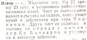 Воднянци- с. Видински окр. На 22 срещу 23 септ. местни въстаници овладяват селото. Установена е работническо-селска власт. На 23 септ. преди обяд въстаническа група от с. Макреш завзема гарата и секретния склад с укрито оръжие. Поради непригодността на оръжието се завръща на гара Макреш. След обяд на 24 септ. правителствена част овладява гарата и води бой/при гара Воднянци/ с въстаници от гара Брусарци.