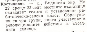Костичовци – с. Видински окр. На 22 срещу 23 септ. местните въстаници овладяват селото и установяват работническо-селска власт. Образувани са три групи, които участвуват в революционните действия в съседните селища.
