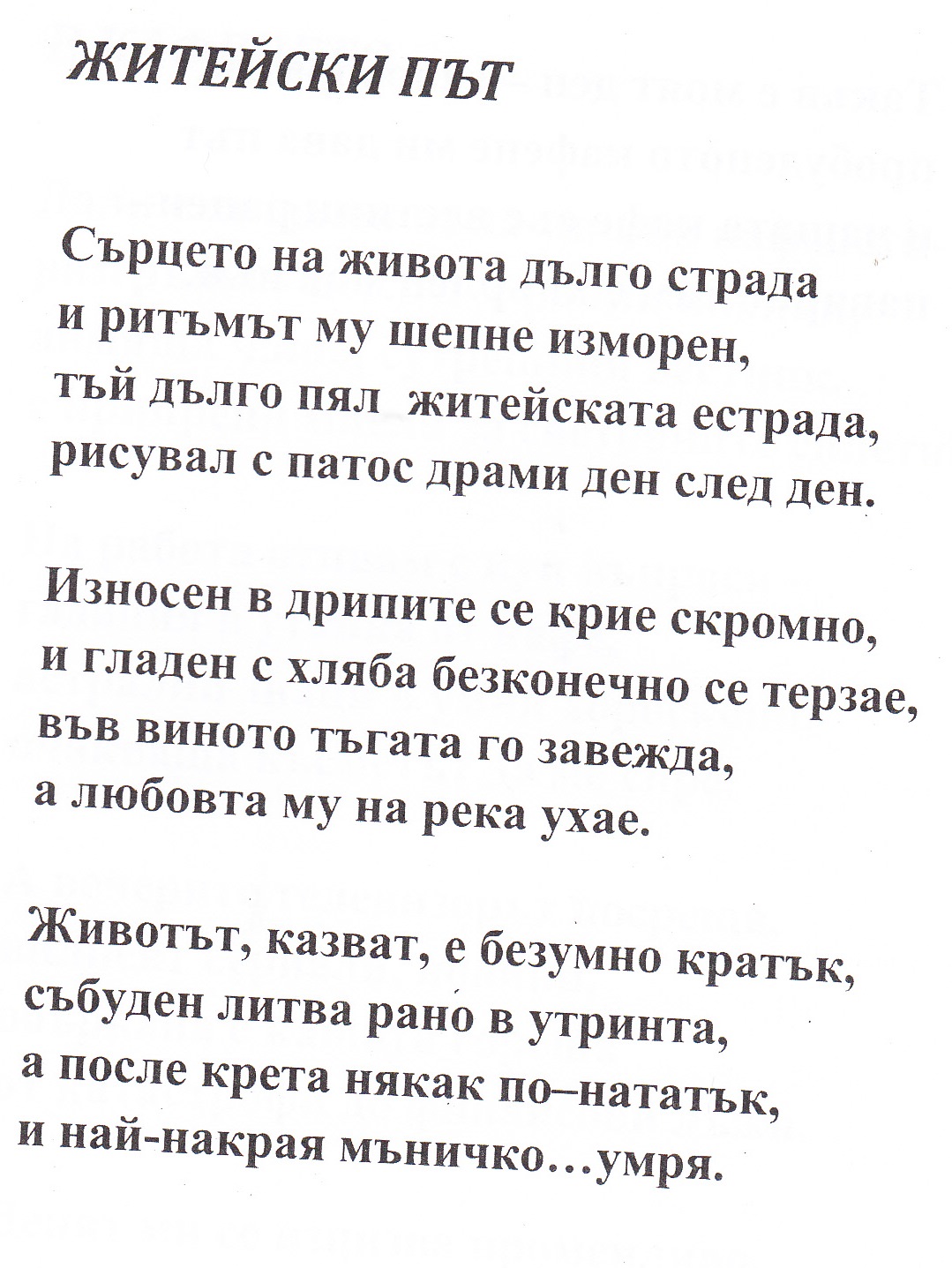 ЖИТЕЙСКИ ПЪТ,…ЕХОТО НА МЛАДОСТТА !