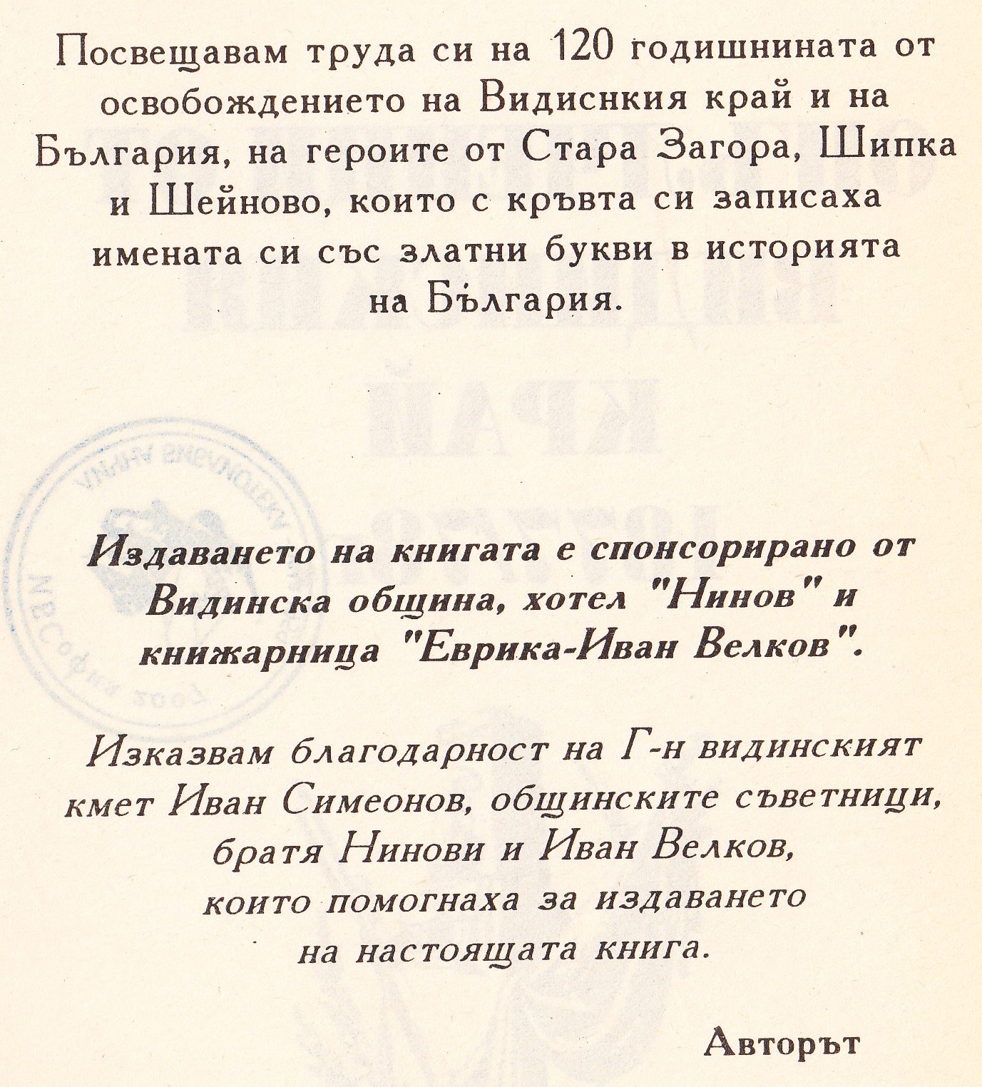 “ Вам Български Опълченци от Видинския край………“