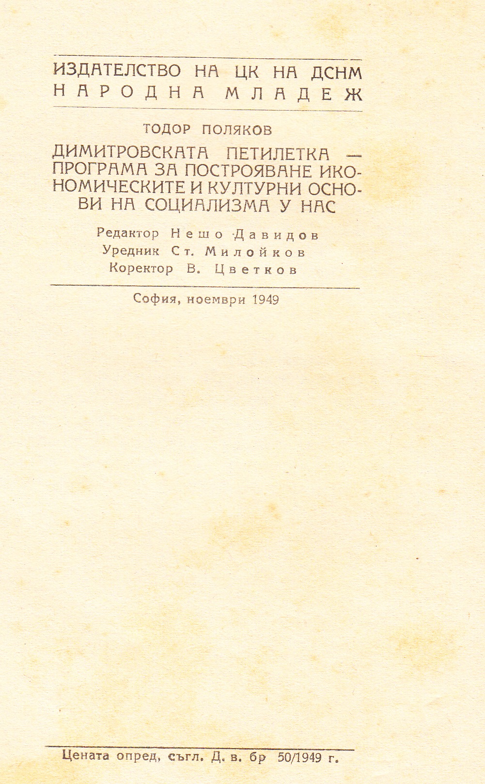 „Димитровската петилетка – програма за построяване икономическите и културни основи на социализма у нас“ – Тодор Поляков – 1949 г.