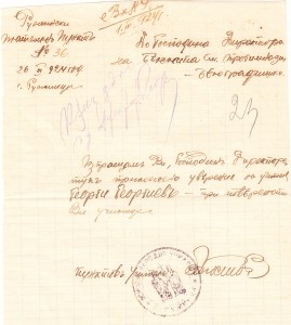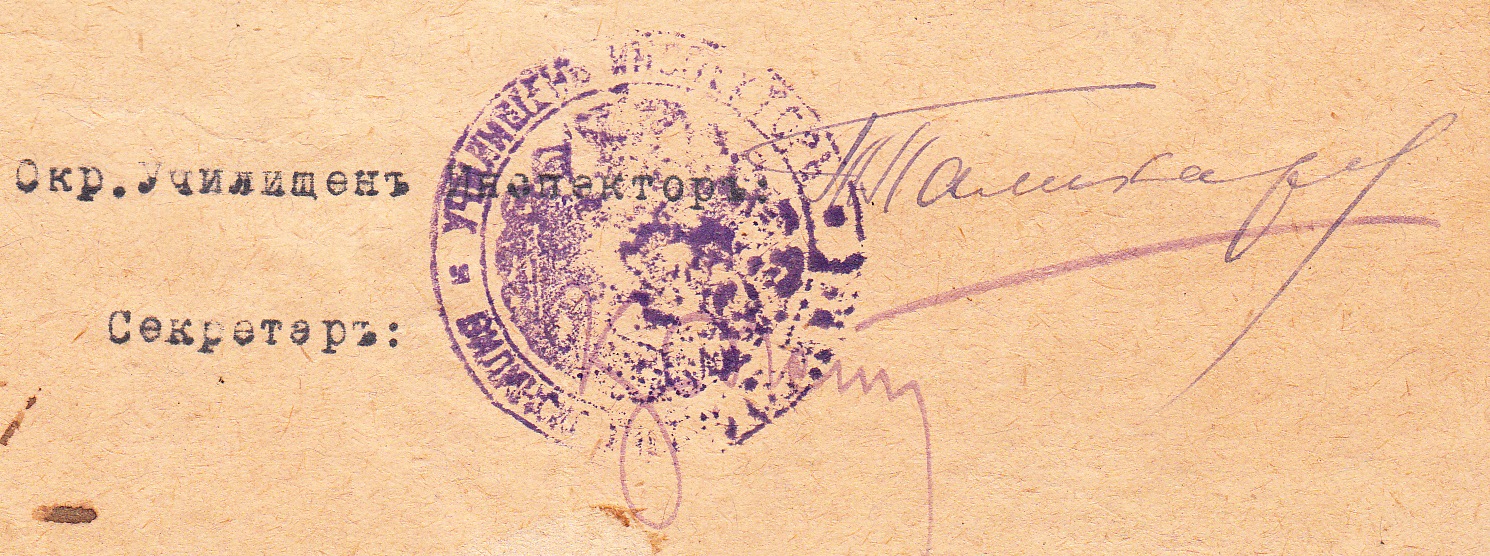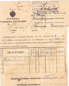 Един документ изпратен до него от пунктовия учител на „Смесено Народно Училище село Ружинци“.