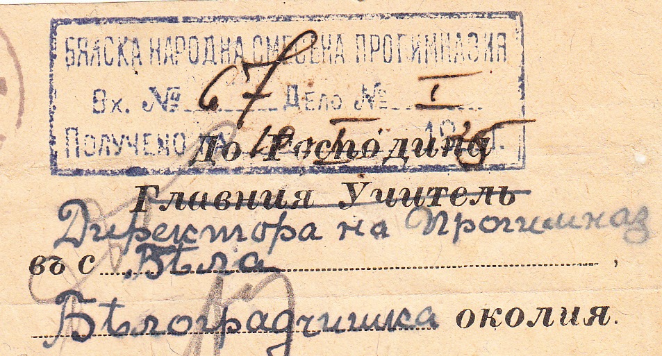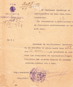 05.01.1925 г. – До директора на Прогимназията село Бела, Белоградчивко