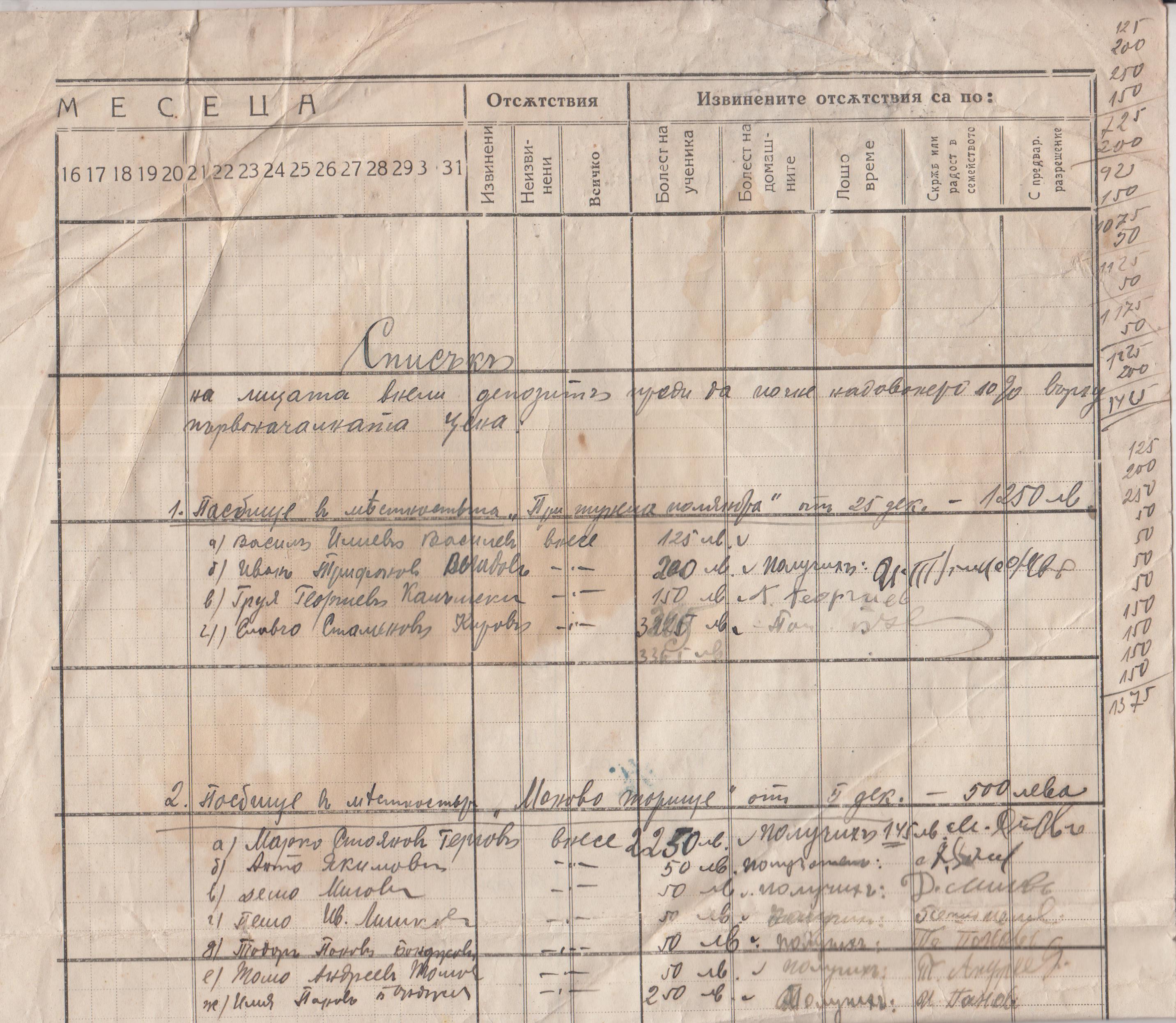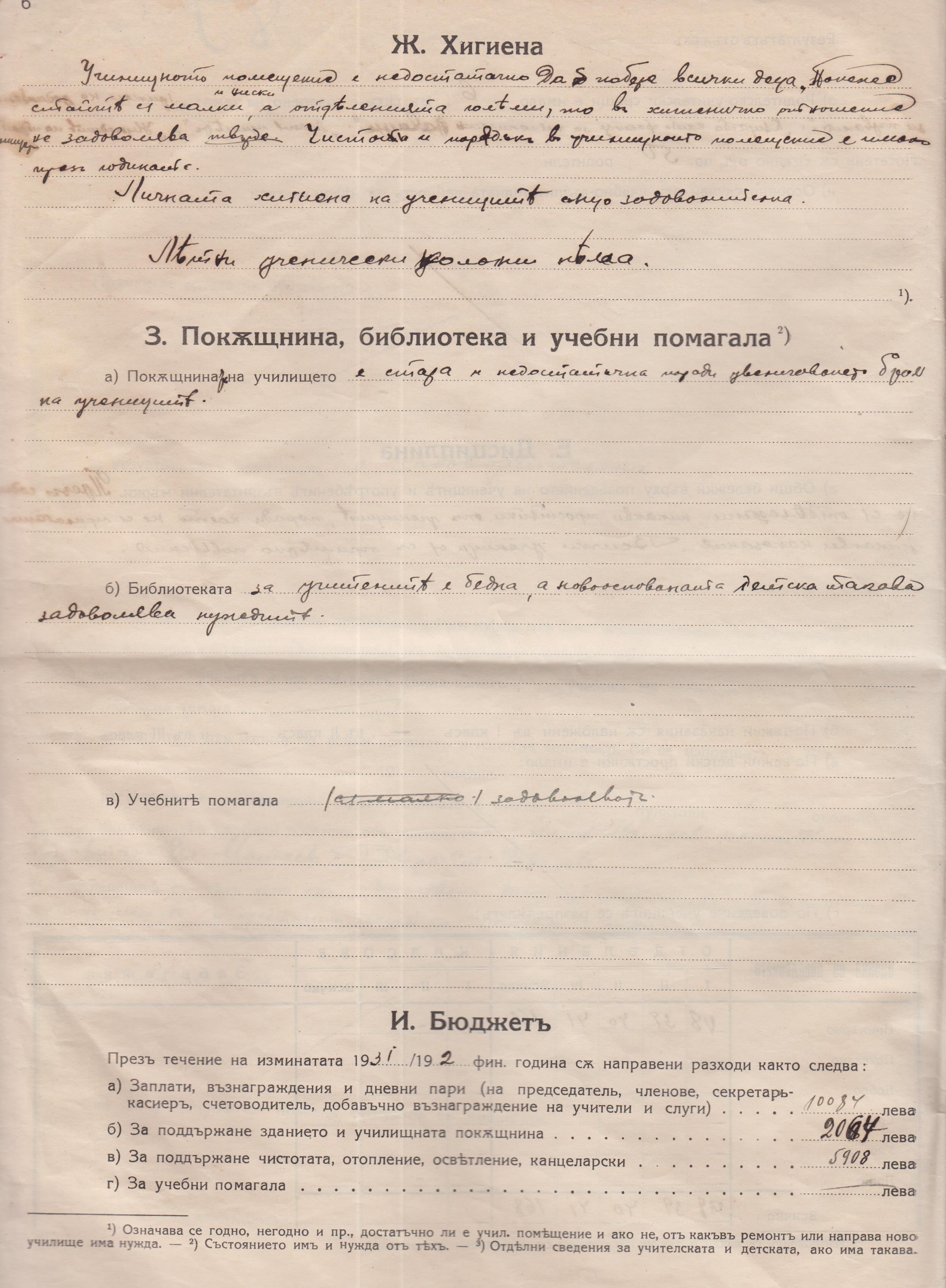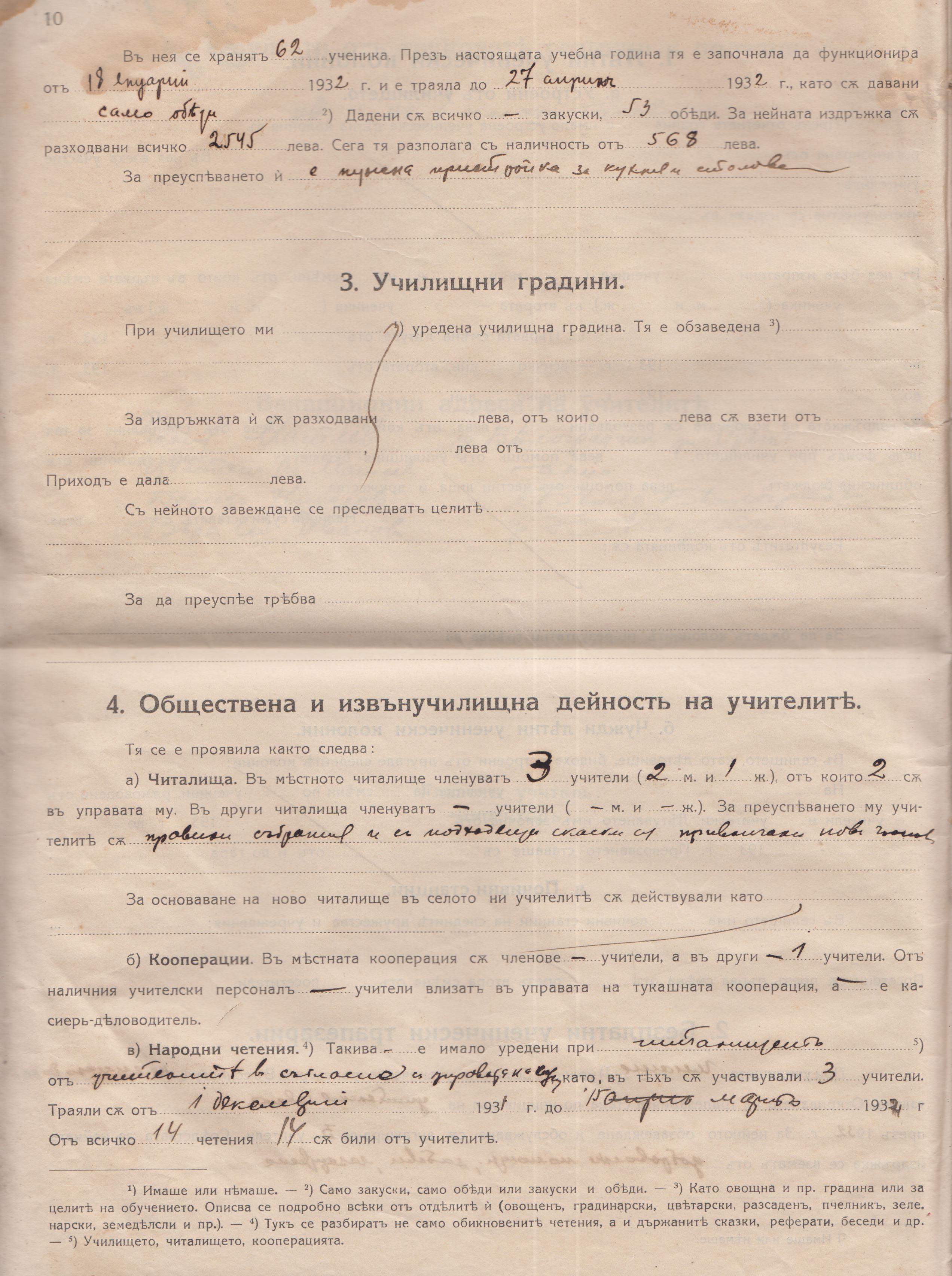 За издръжка на бедни ученици са изразходвани 269 лева – за учебници. Трапезария се откри за първи път на 18 Януари 1932 г. , която е дала 53 обяда до 27 Април 1932 г.