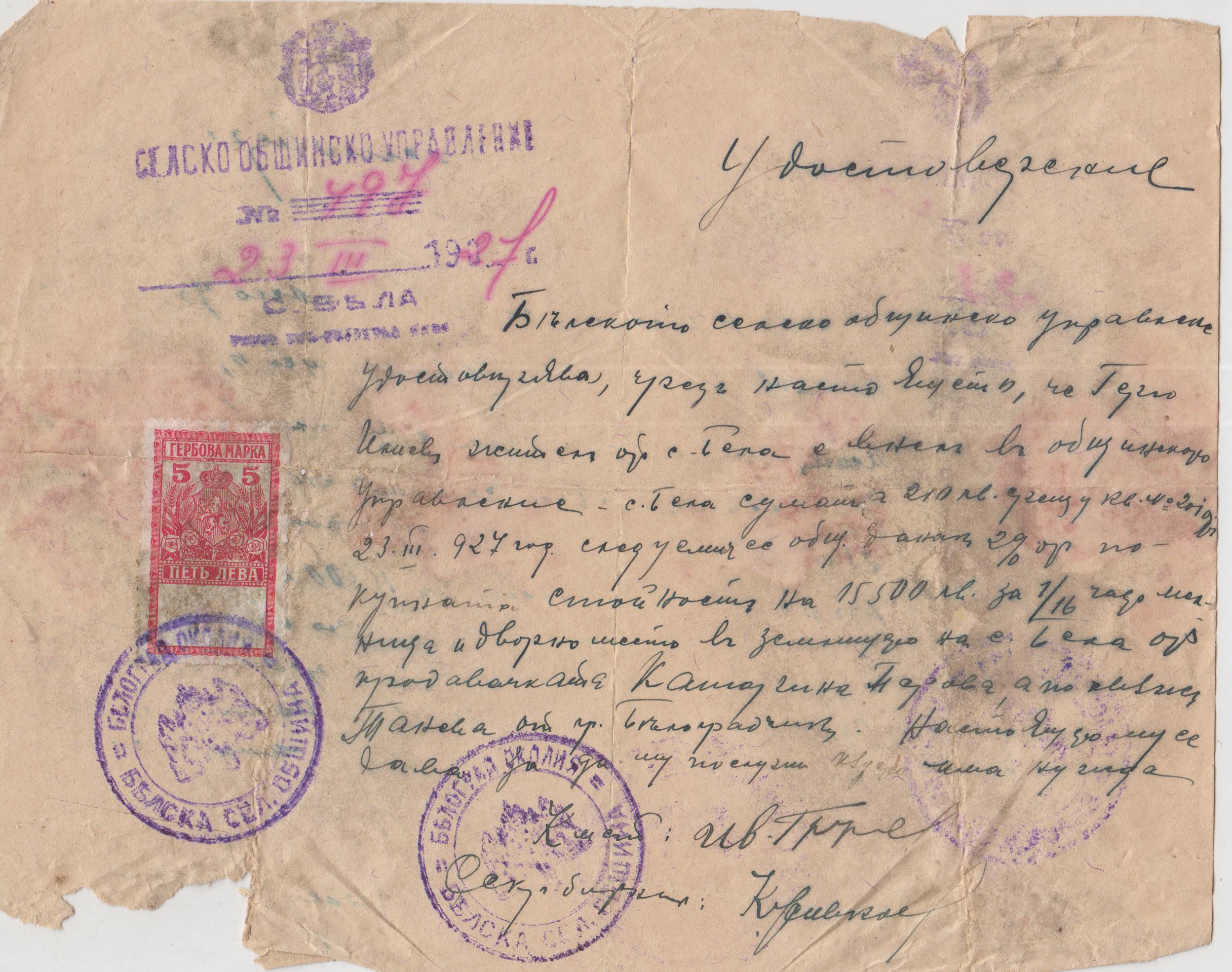 село Бела – 23.03.1927 год.