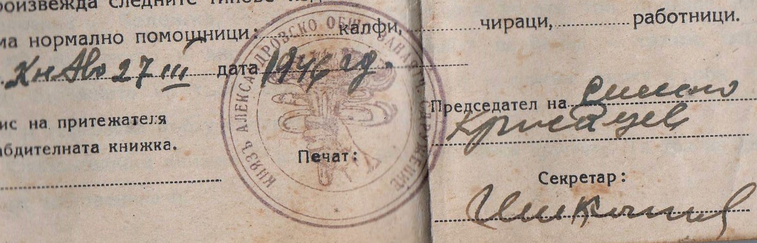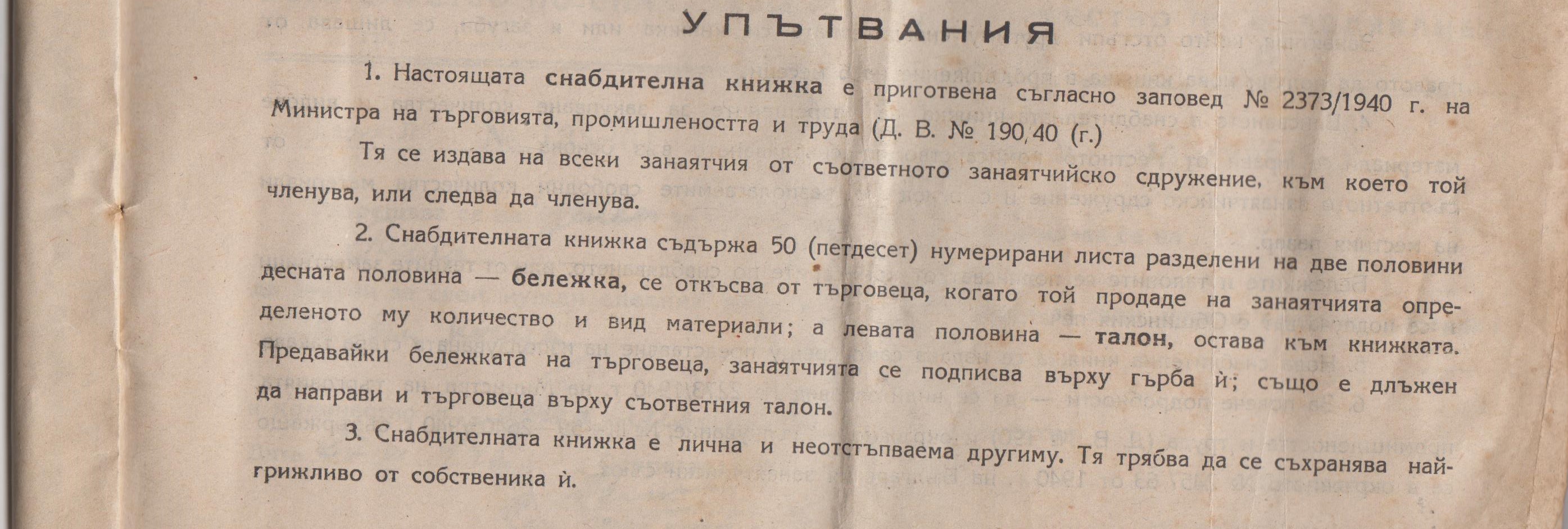 Снабдителна книжка на Ценка Борисова /1907 – 1986 г./ машинно плетачка от с.Бела – 1946 година.
