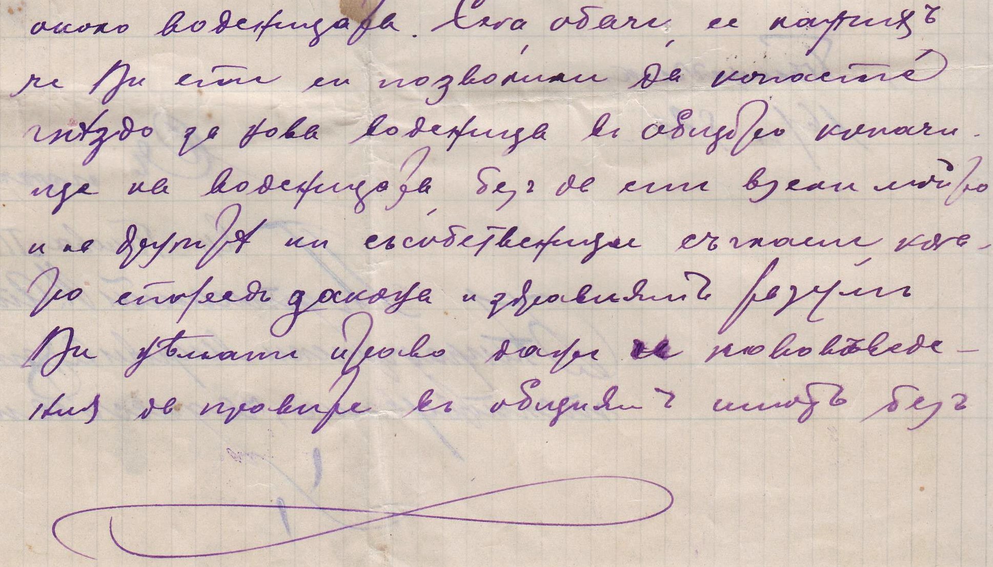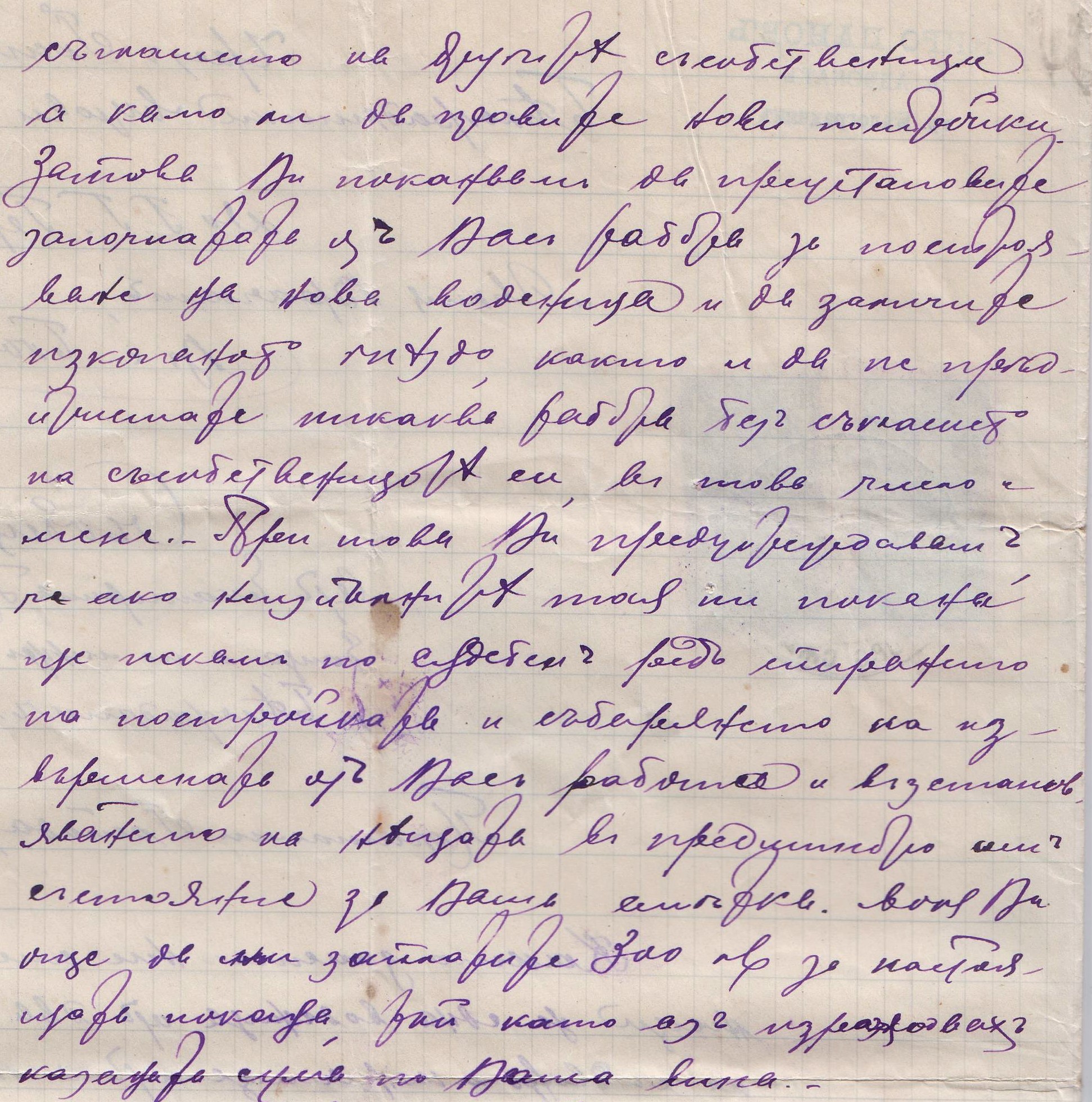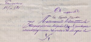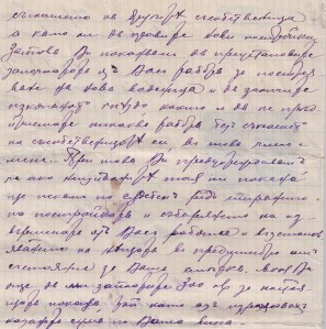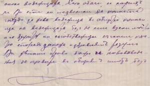 Едно съобщение от Екатерина Перова по мъж Танева, чрез адвоката Киро Панов до Герго Илиев и баща му Илия Пешев Врачкин от с.Бела. Документа касае взаимоотношенията между тях, като съсобственици във една воденица от два мелни камъка, с двор и „каначище“ от около 8 декара, находящо се в Долната махала до съседи: барата /Белската река/ , път, железопътна линия и обща зеленчукова градина.