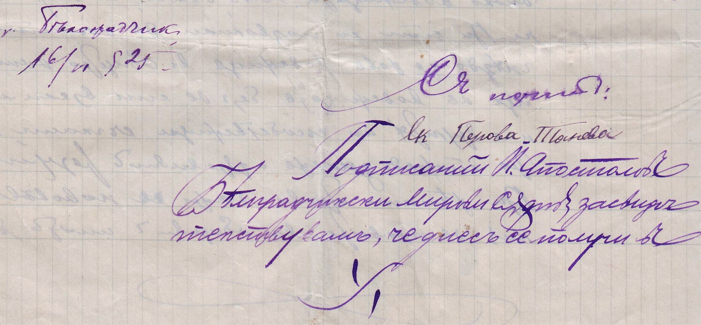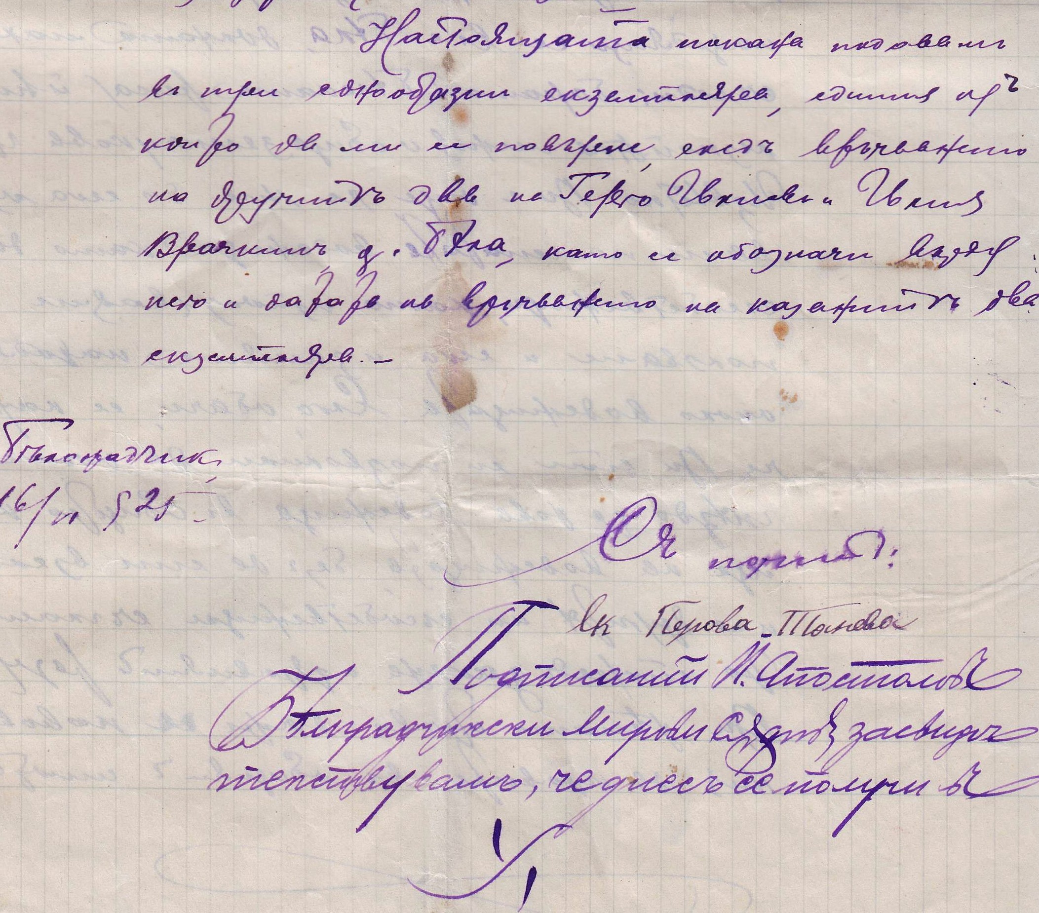 Подписаний: П. АПОСТОЛОВ – Белоградчишки Мирови Съдия