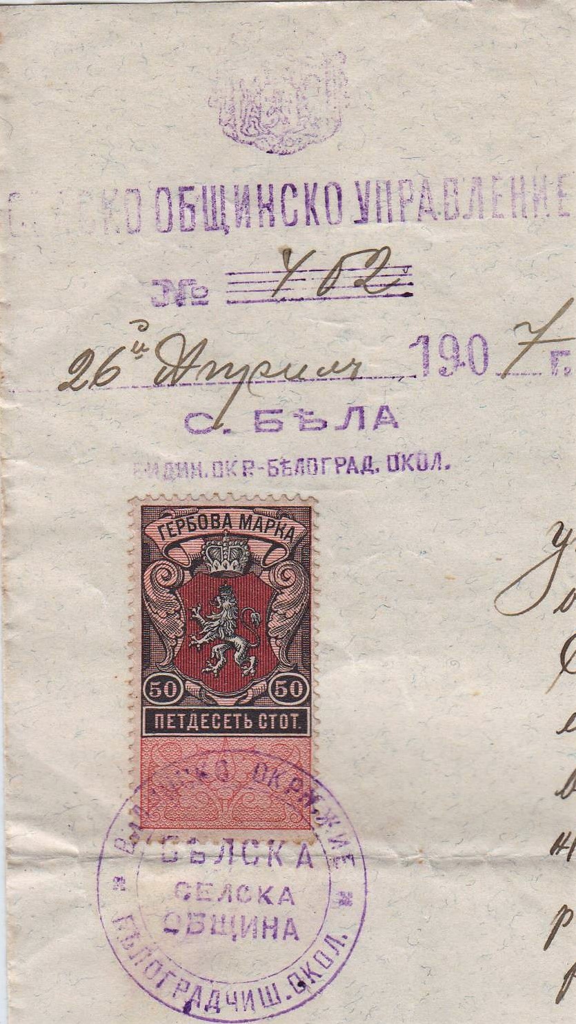 ОБЩИНСКО УПРАВЛЕНИЕ N 402 от 26 АПРИЛ 1907 г. с.БЕЛА