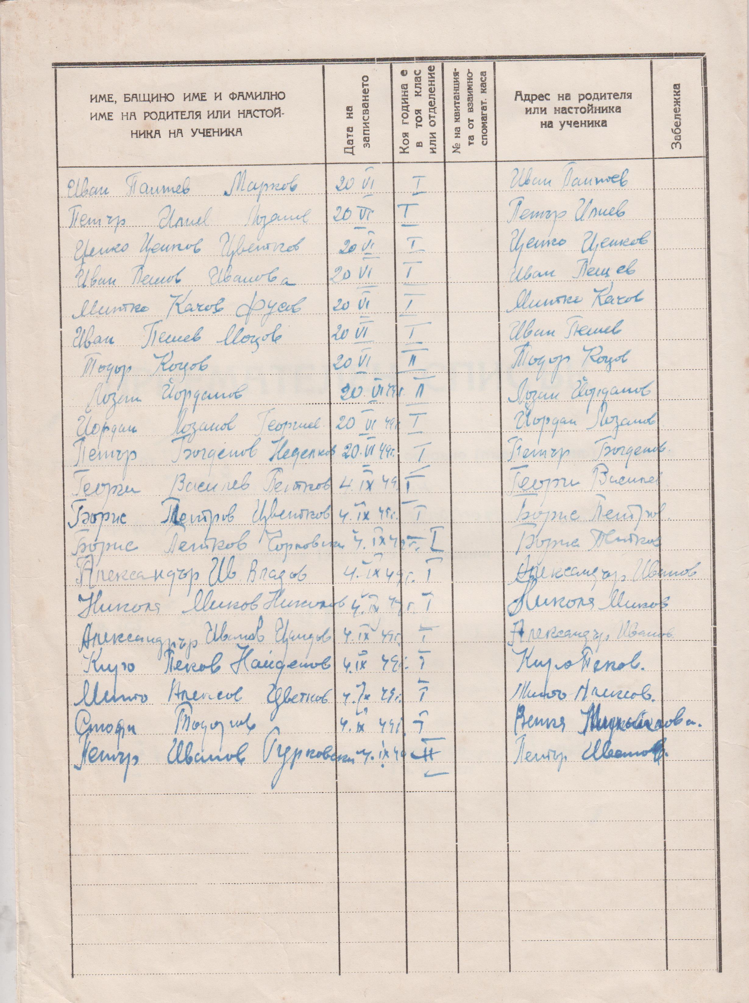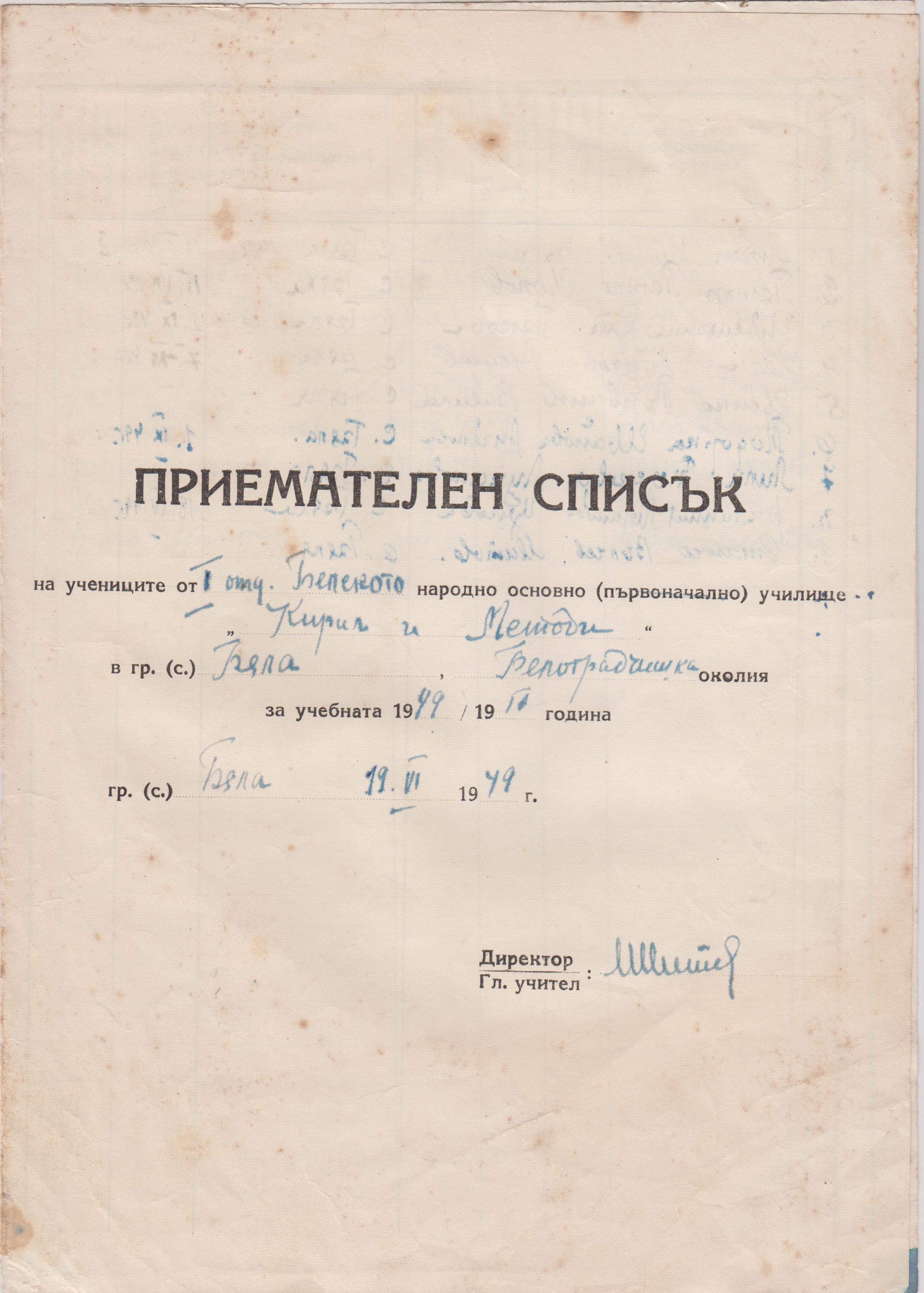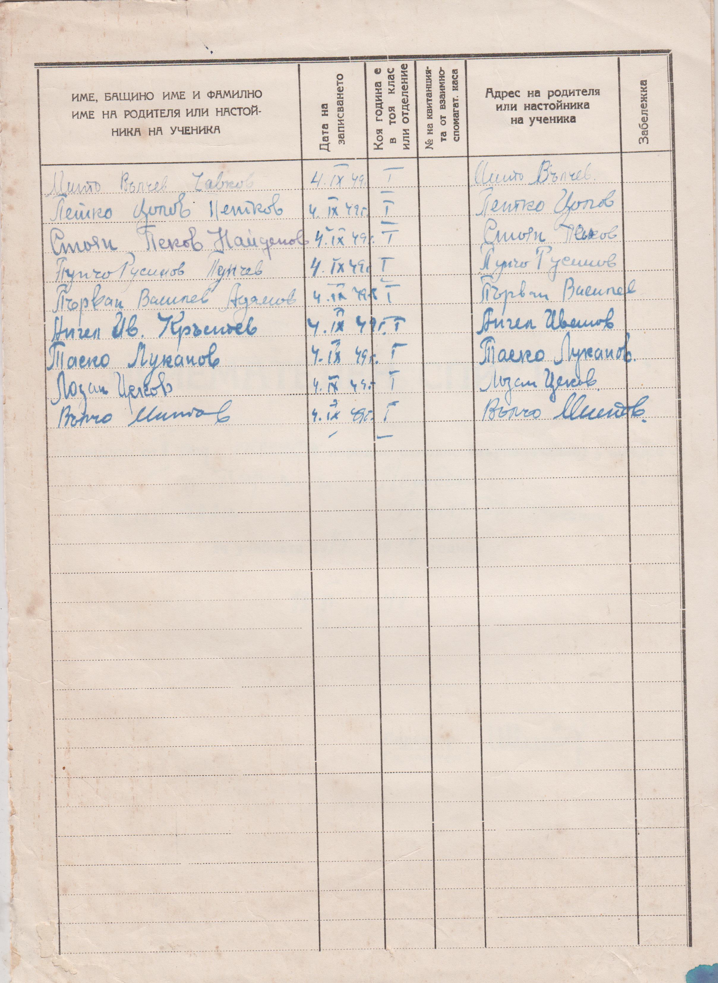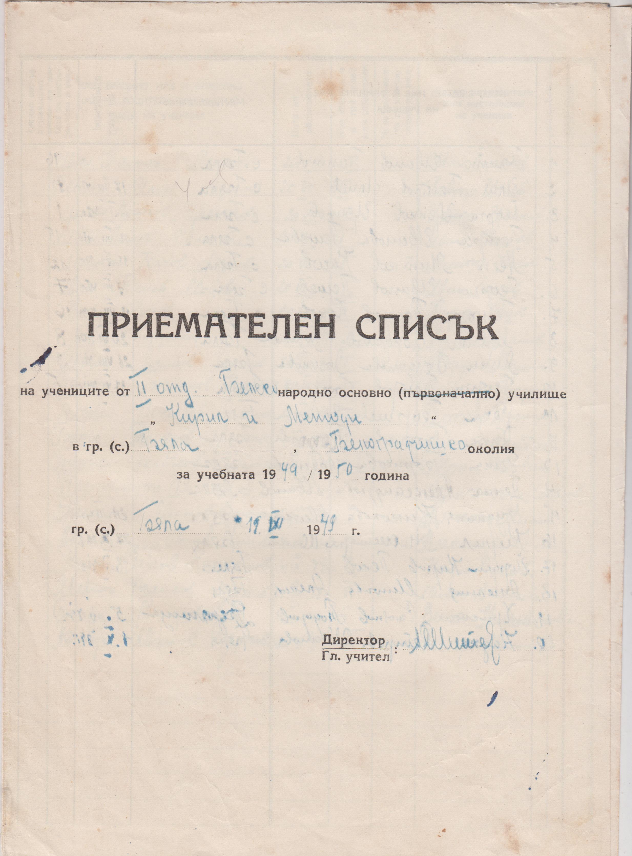 На 19 Юни 1949 година е са изготвени списъци на учениците за учебната 1949/50 година.