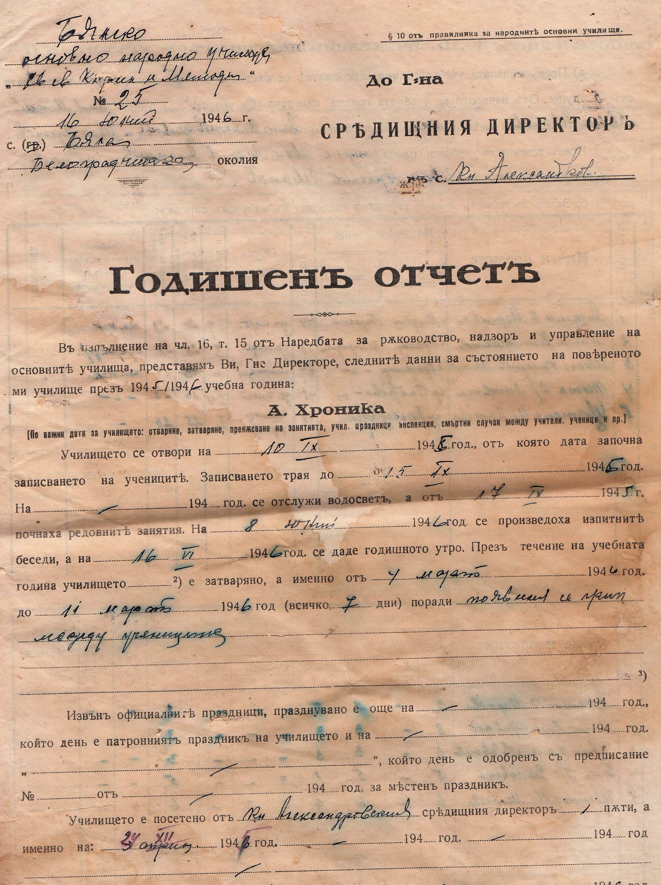 ГОДИШЕН ОТЧЕТ 1945/46г.