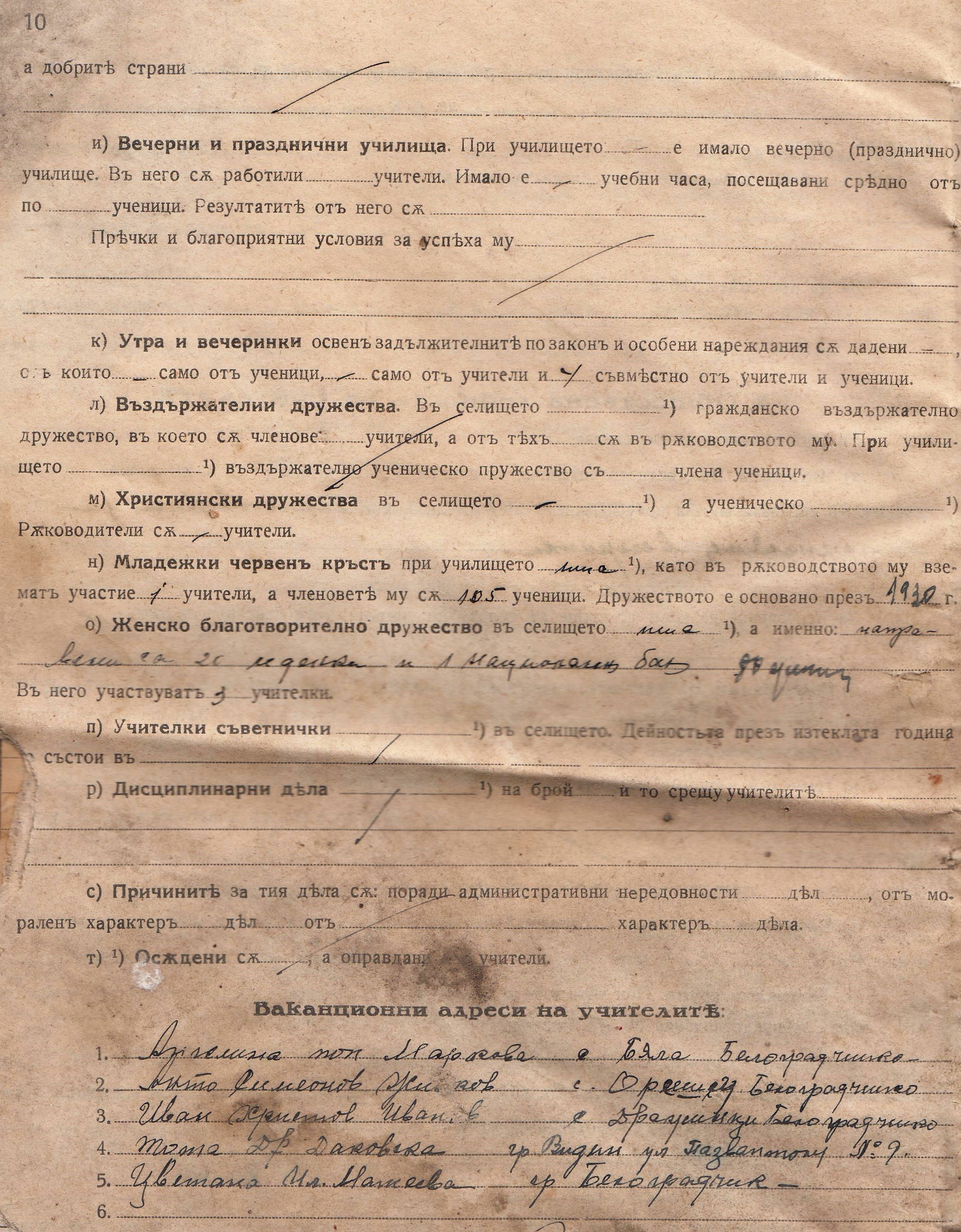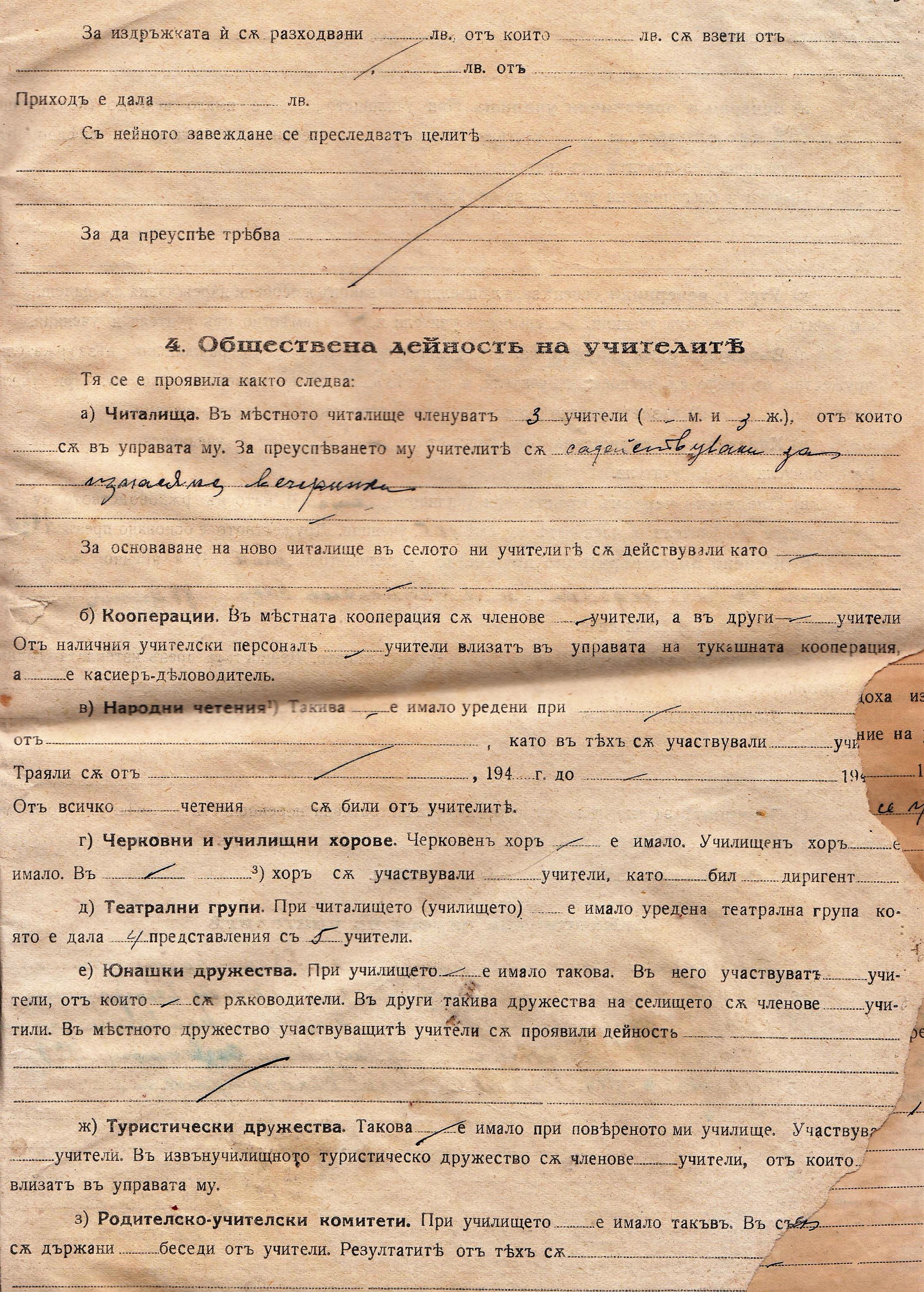 Женско Благотворително Дружество има: Направени са 20 седенки и един национален бал – 80 жени и три учителки.