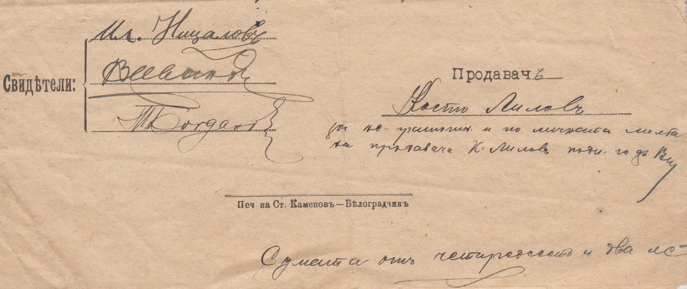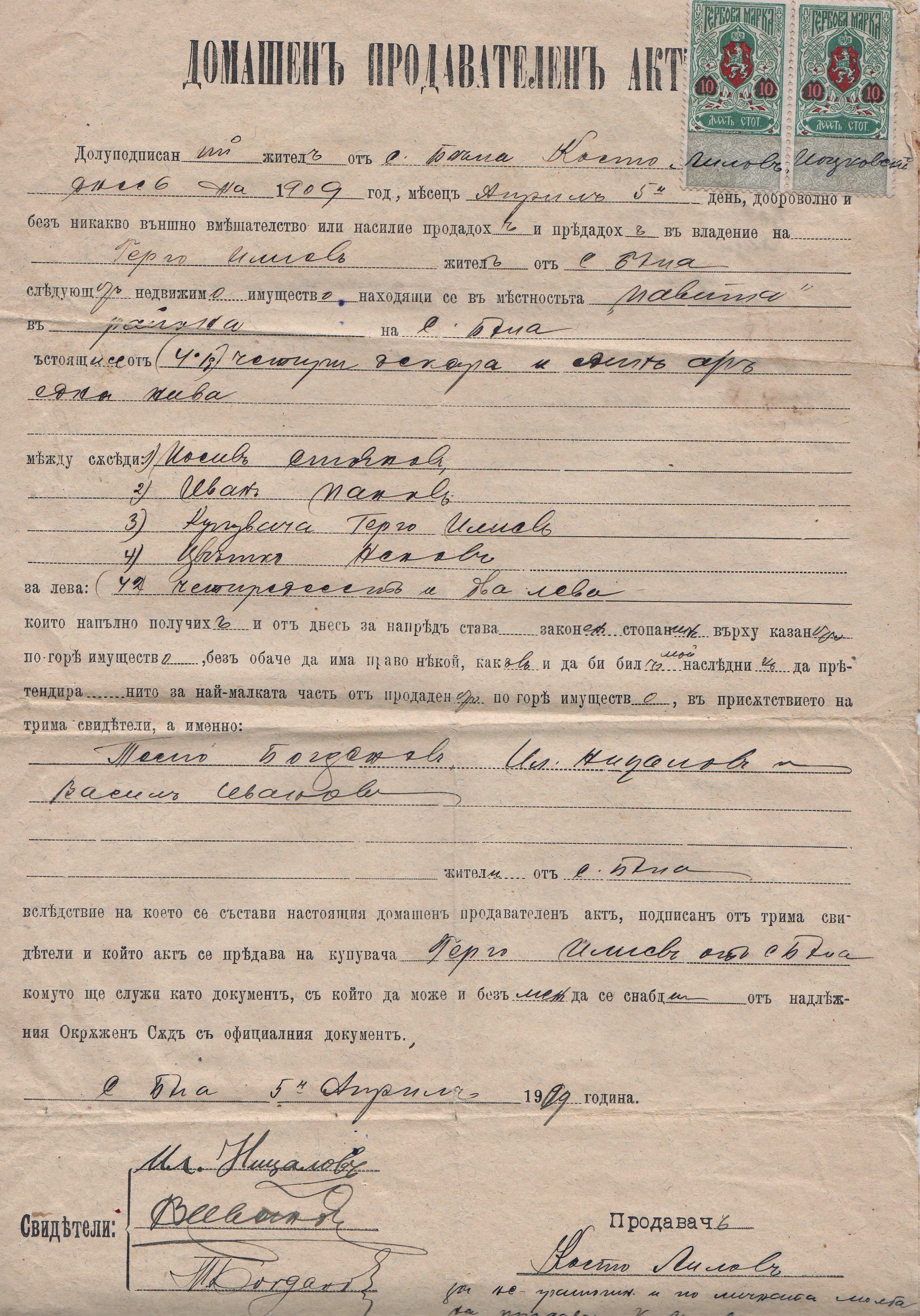 Свидетели: Томо Богданов, Илия Ницалов и Васил Иванов.