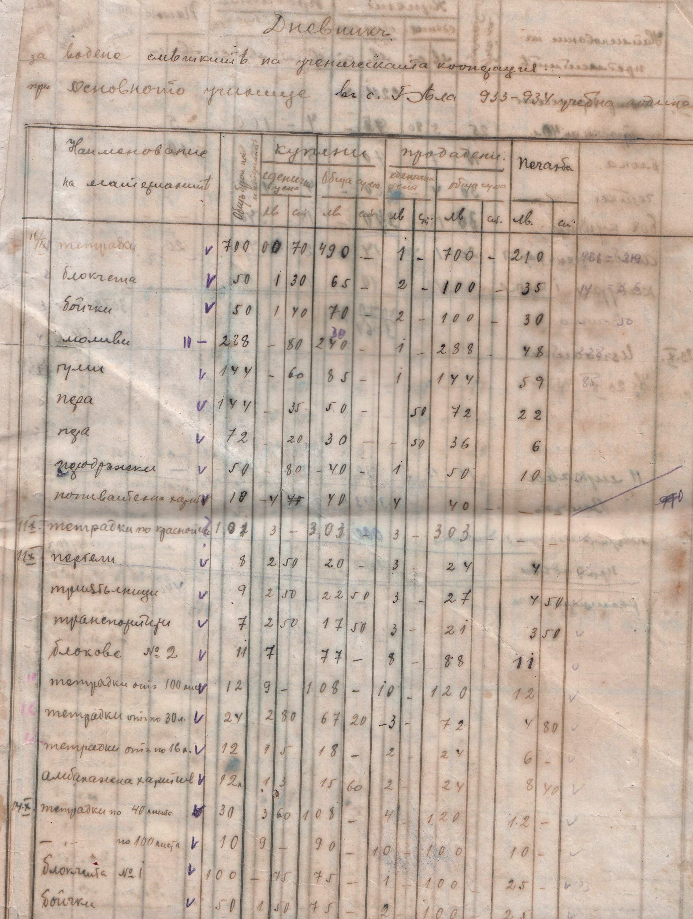 ДНЕВНИК за водене сметките на ученическата кооперация при основното училище в село Бела 1933 – 1934 учебна година.