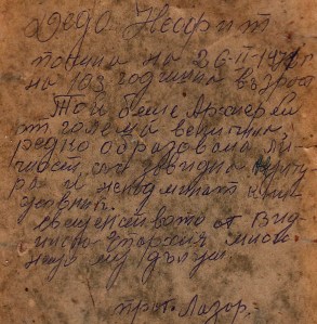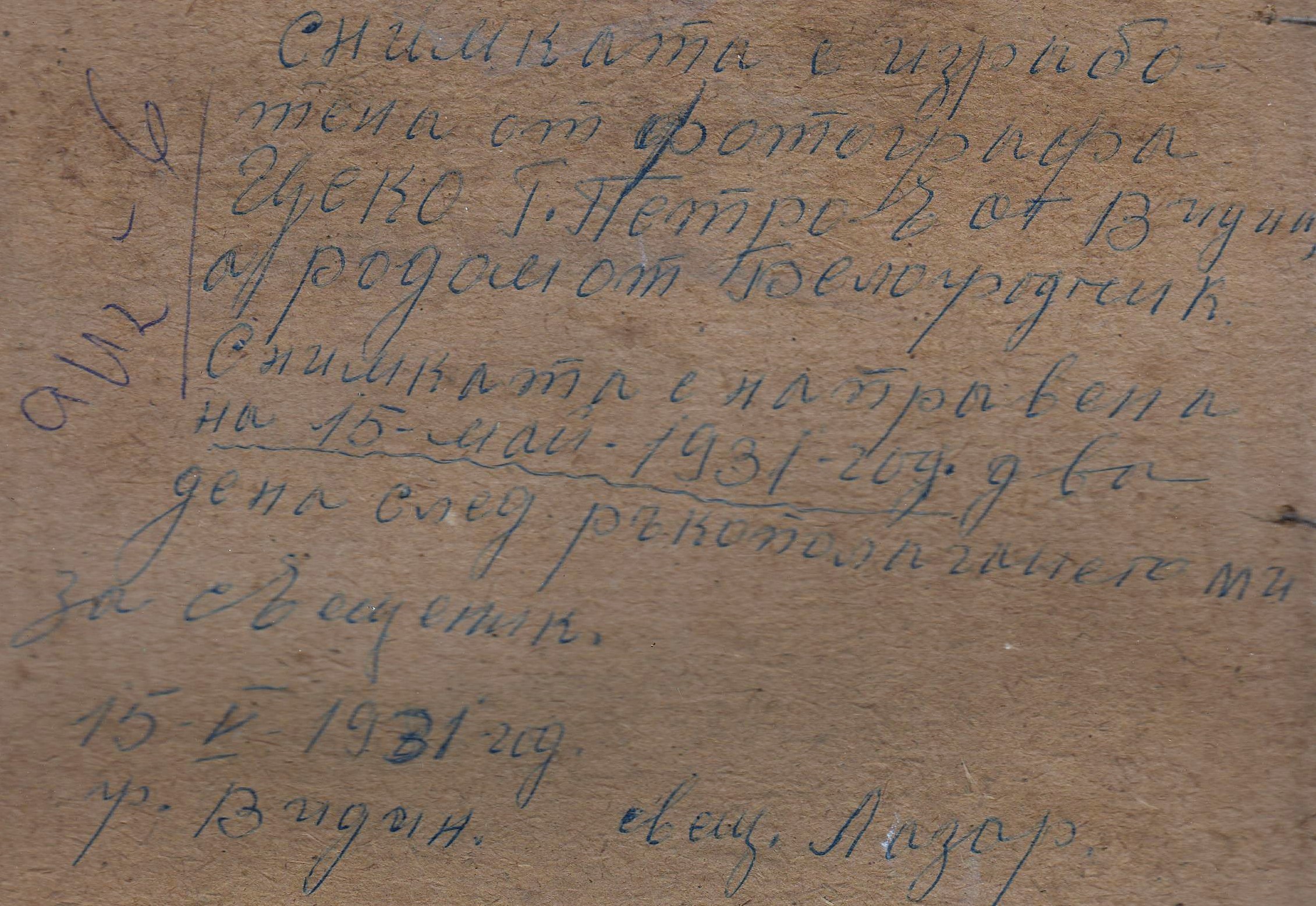 …“ Снимката е изработена от Цеко Г.Петров от гр.Видин, а родом от гр.Белоградчик. Снимката е направена на 15 Май 1931 г0д., два дена след ръкополагането ми за свещеник…“