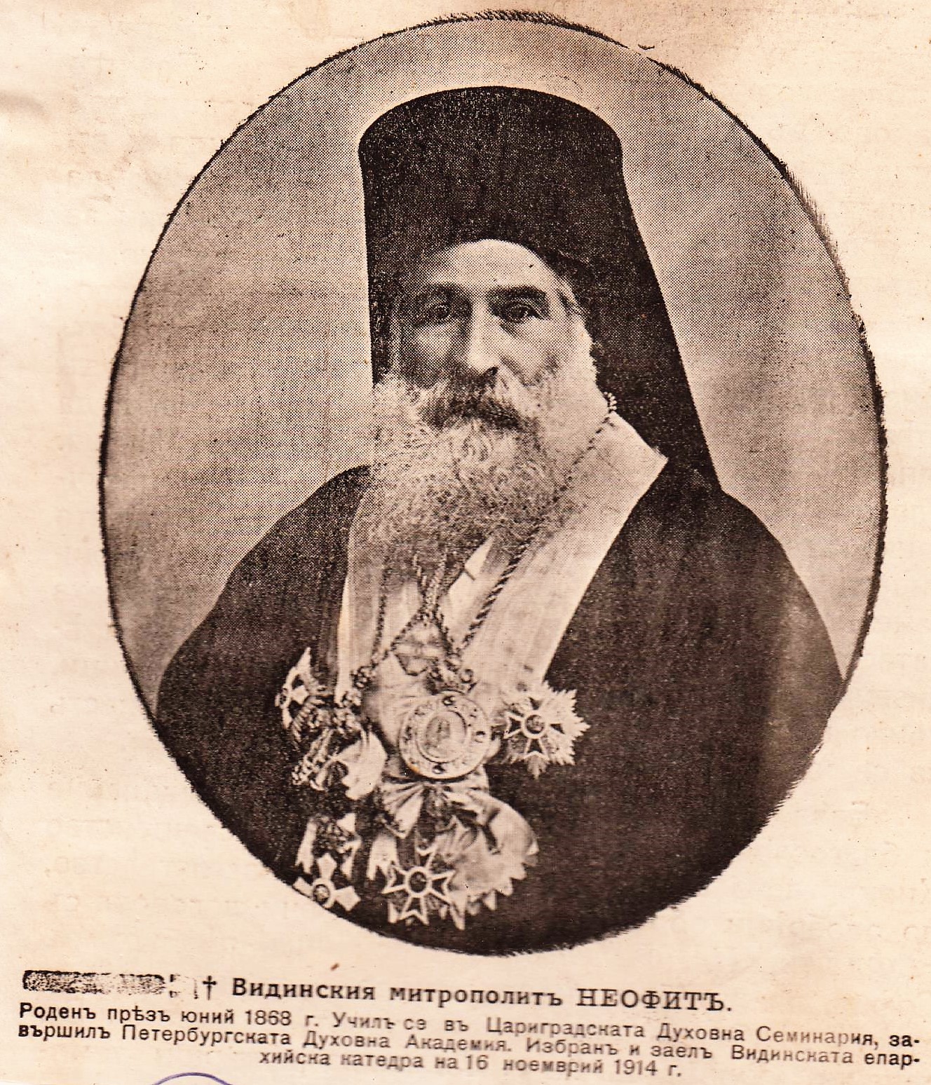 Една снимка на Видинския митрополит Неофит /1868 – 1974 г./ с надпис на гърба от Свещ. Лазар Иванов Попов, свищеник на с.Калугер и с.Бела
