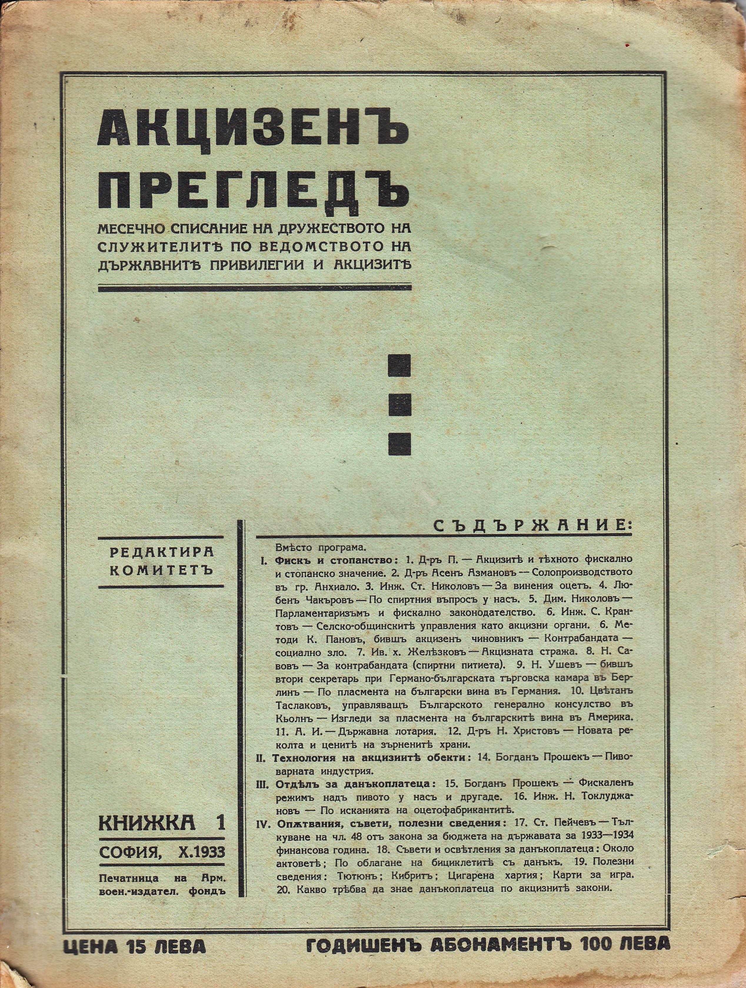Списание „Акцизен преглед“ книжка 1 , год. 1933 г.