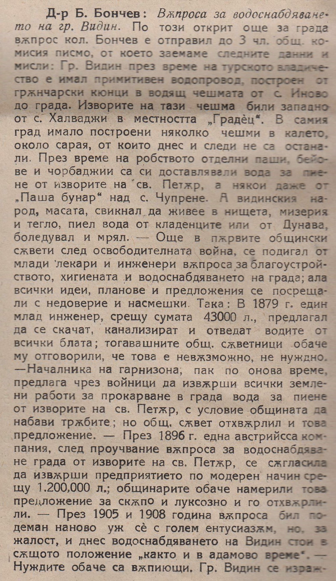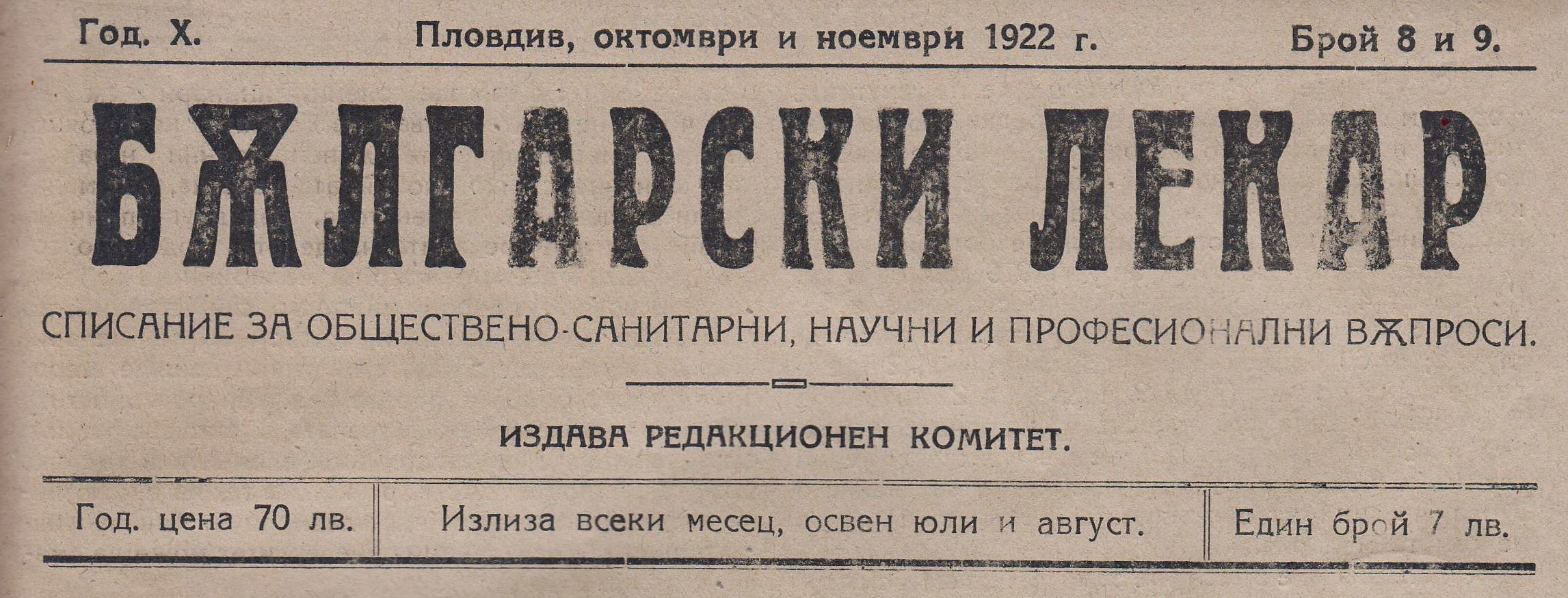 Една статия на Д-р Бърни Бончев от гр. Видин / районен инспектор по маларията/ във вестник „Български лекар“ бр.8 и 9 – 1922 г.